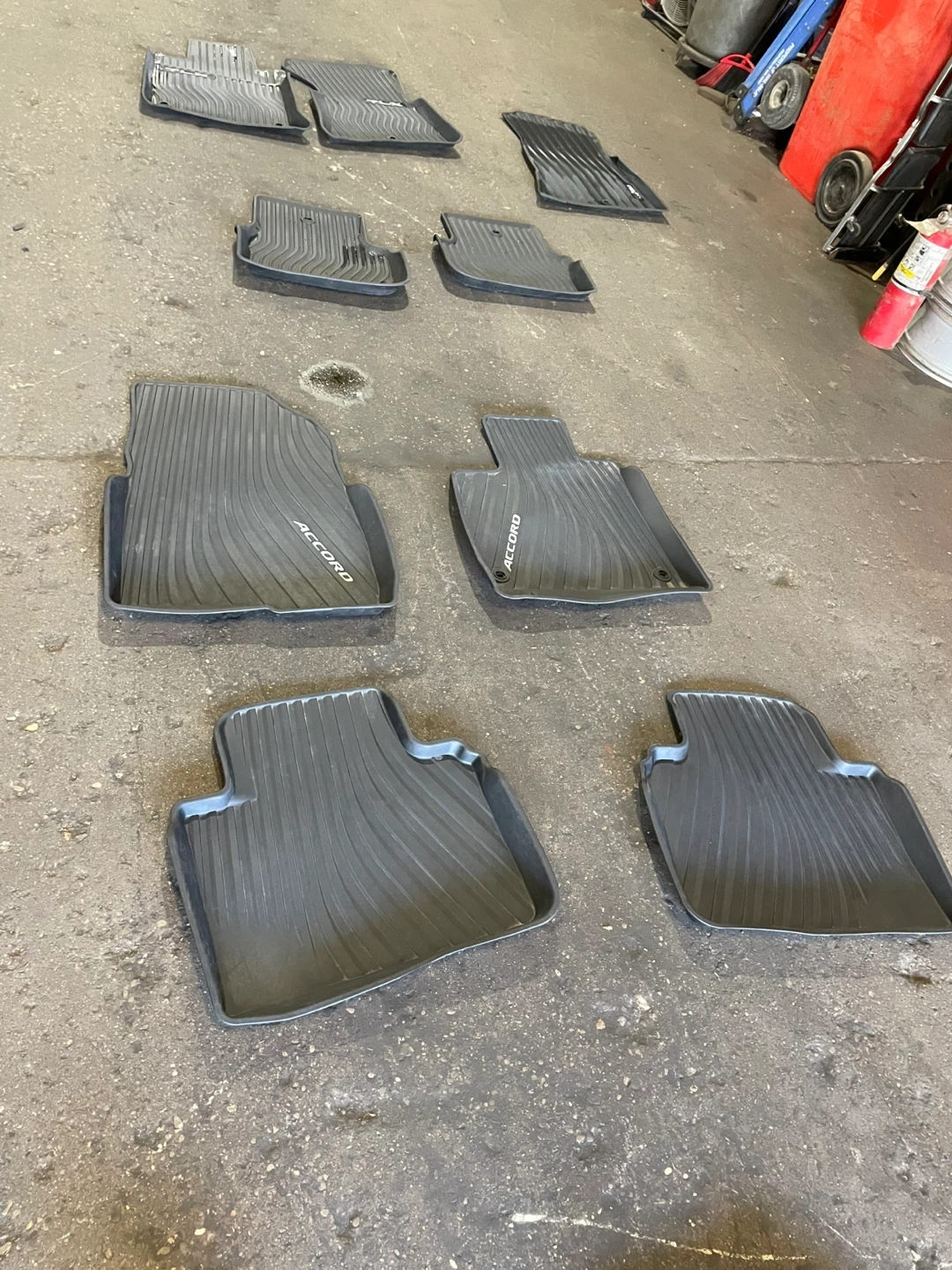 Selling a full set of floor mats for a Honda Accord. They're in good condition and ready to keep your car's interior clean and protected! Fits 2021 to 2025 models