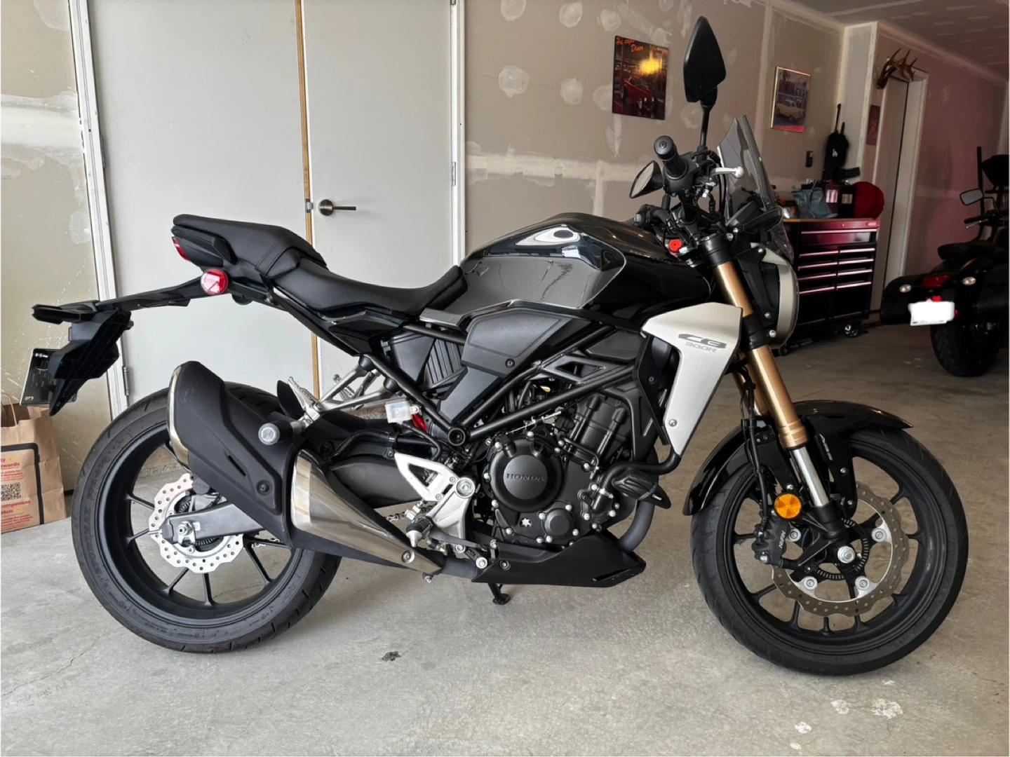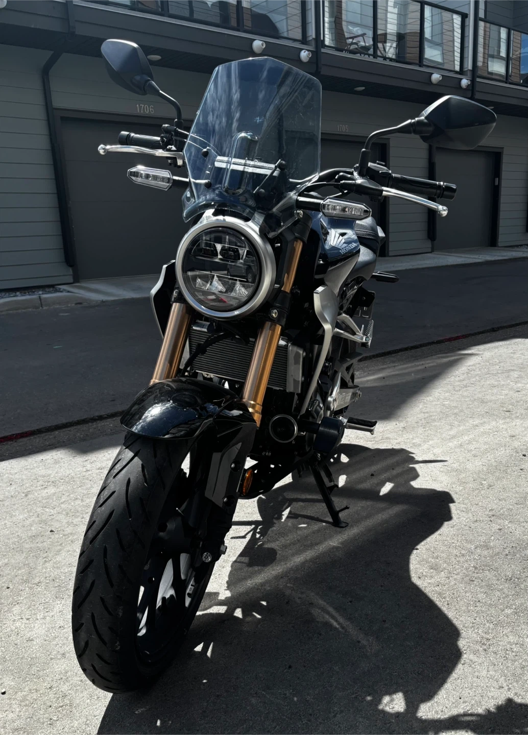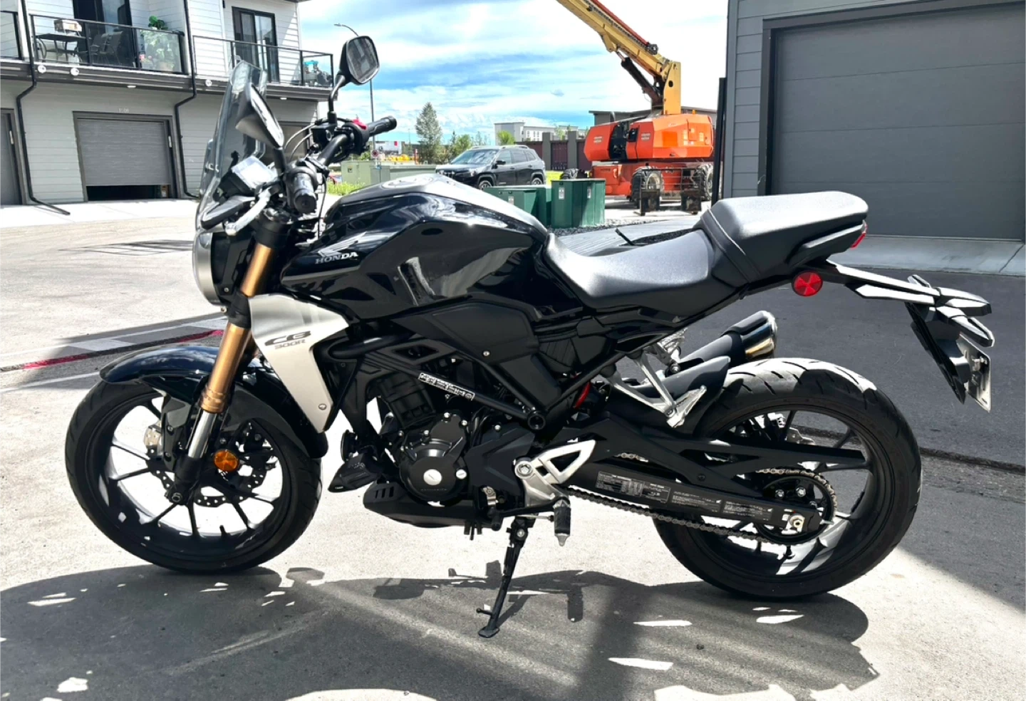 Selling my Honda CB300R motorcycle. It's in like new condition and ready to ride. This bike is perfect for city commuting or weekend adventures. Bike includes -a windshield, -gear indicator -Trex crash pegs, -fresh service in spring Comes with manual and 2 sets of keys. Also includes a matte black bell medium helmet. Bike is in excellent condition and only has 1875kms on it. A perfect starter or commuter bike. Super fun to ride! Lady driven, always been parked inside garage If ad is up it’s available