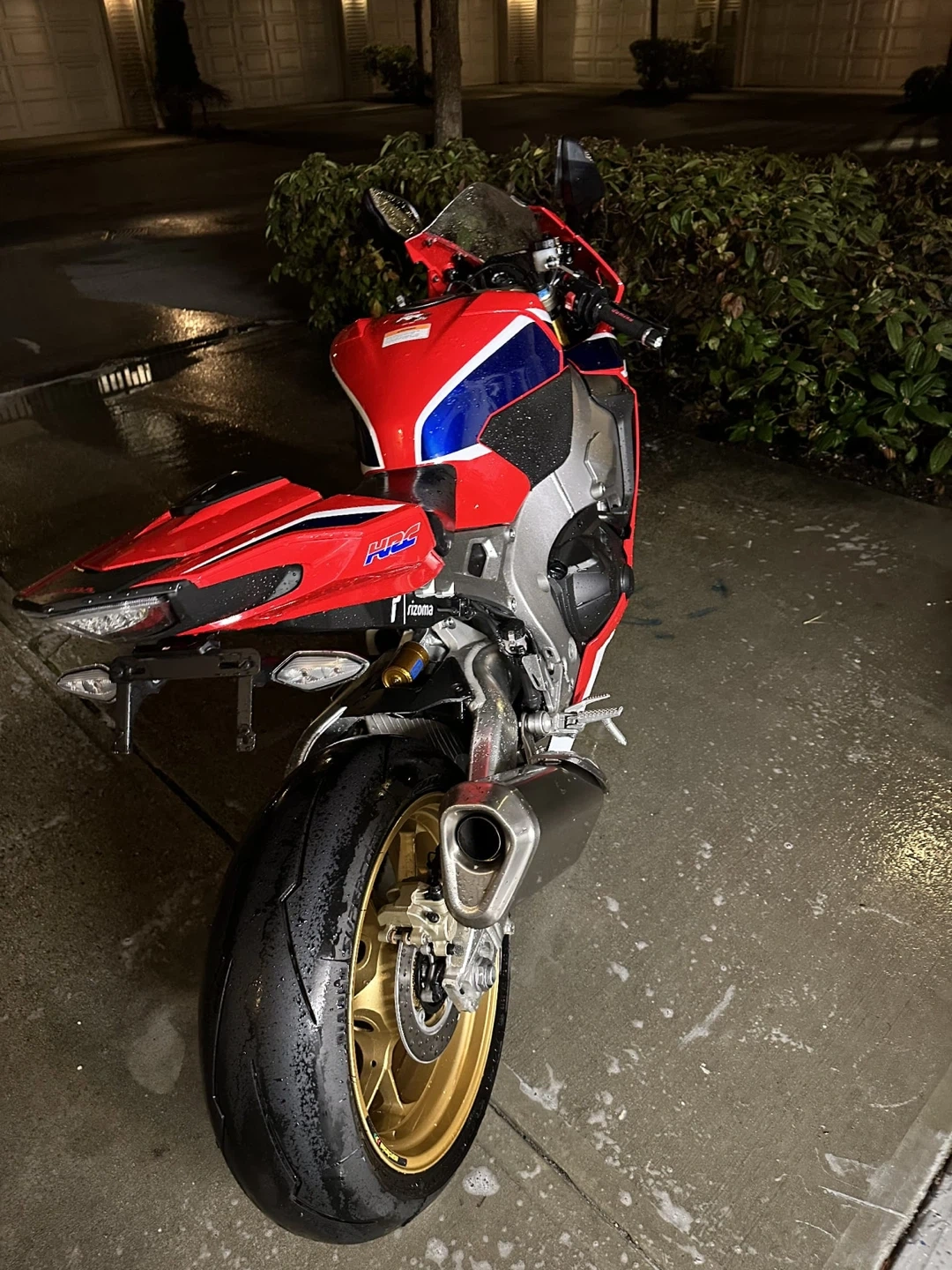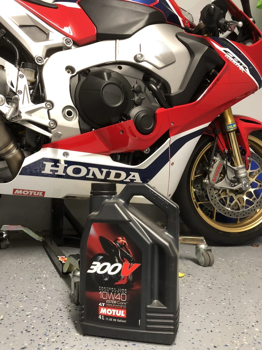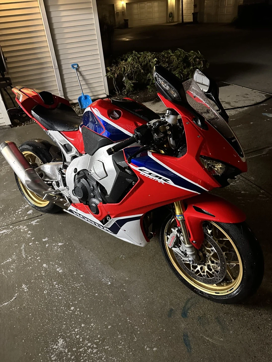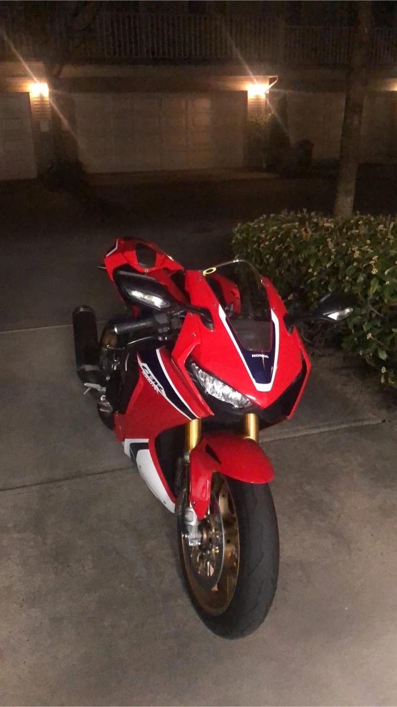 Selling a Honda CBR 1000RR motorcycle, as seen in the pictures. It's red, white, and blue. Perfect for anyone looking for a sporty ride!
