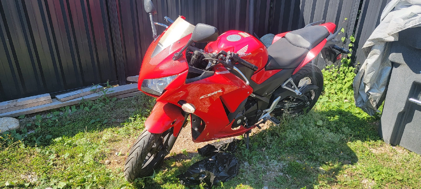 Selling a red Honda CBR motorcycle. It's in good condition and ready to ride. Great for getting around town or enjoying a weekend cruise! 300cc 21km