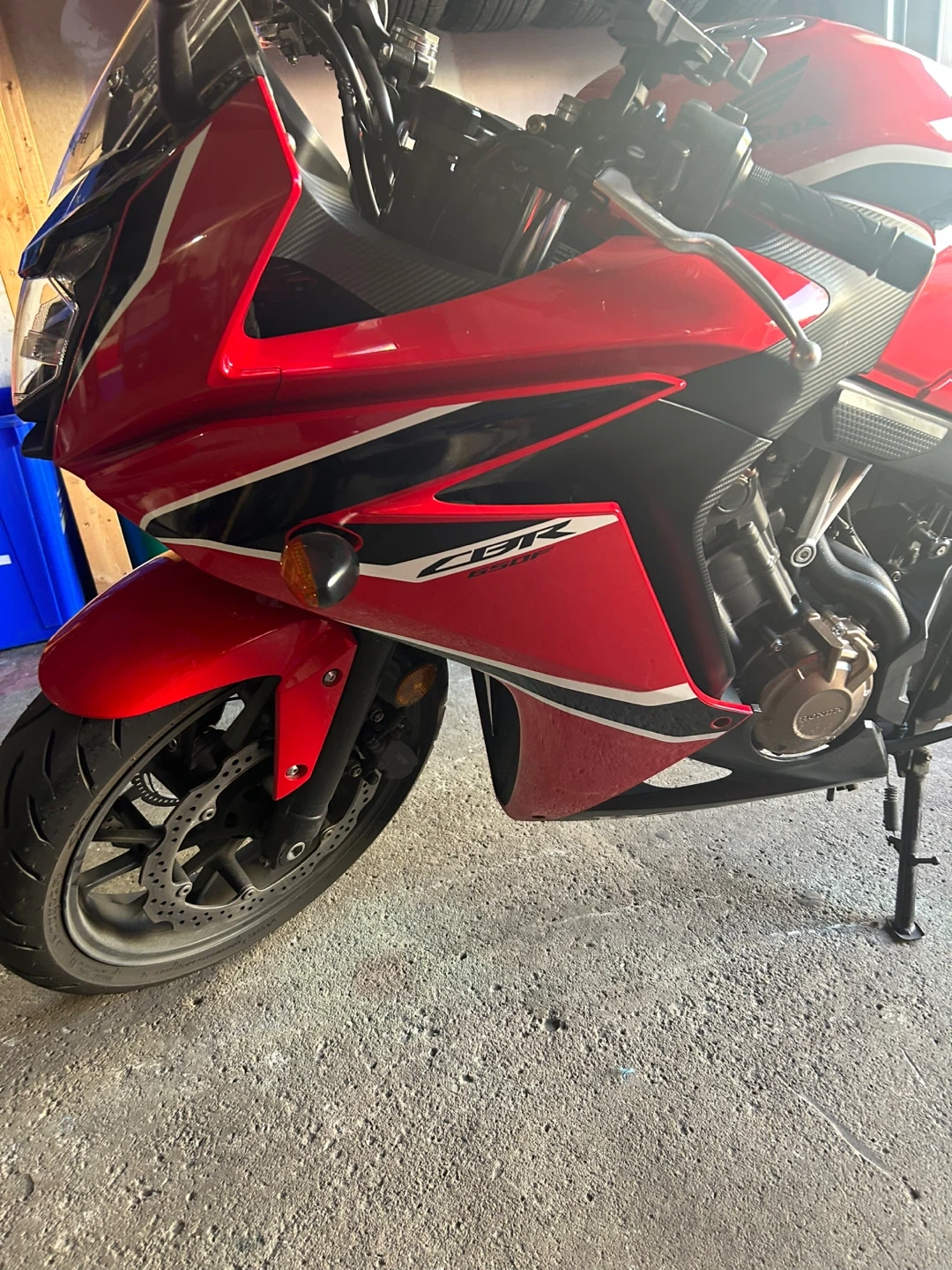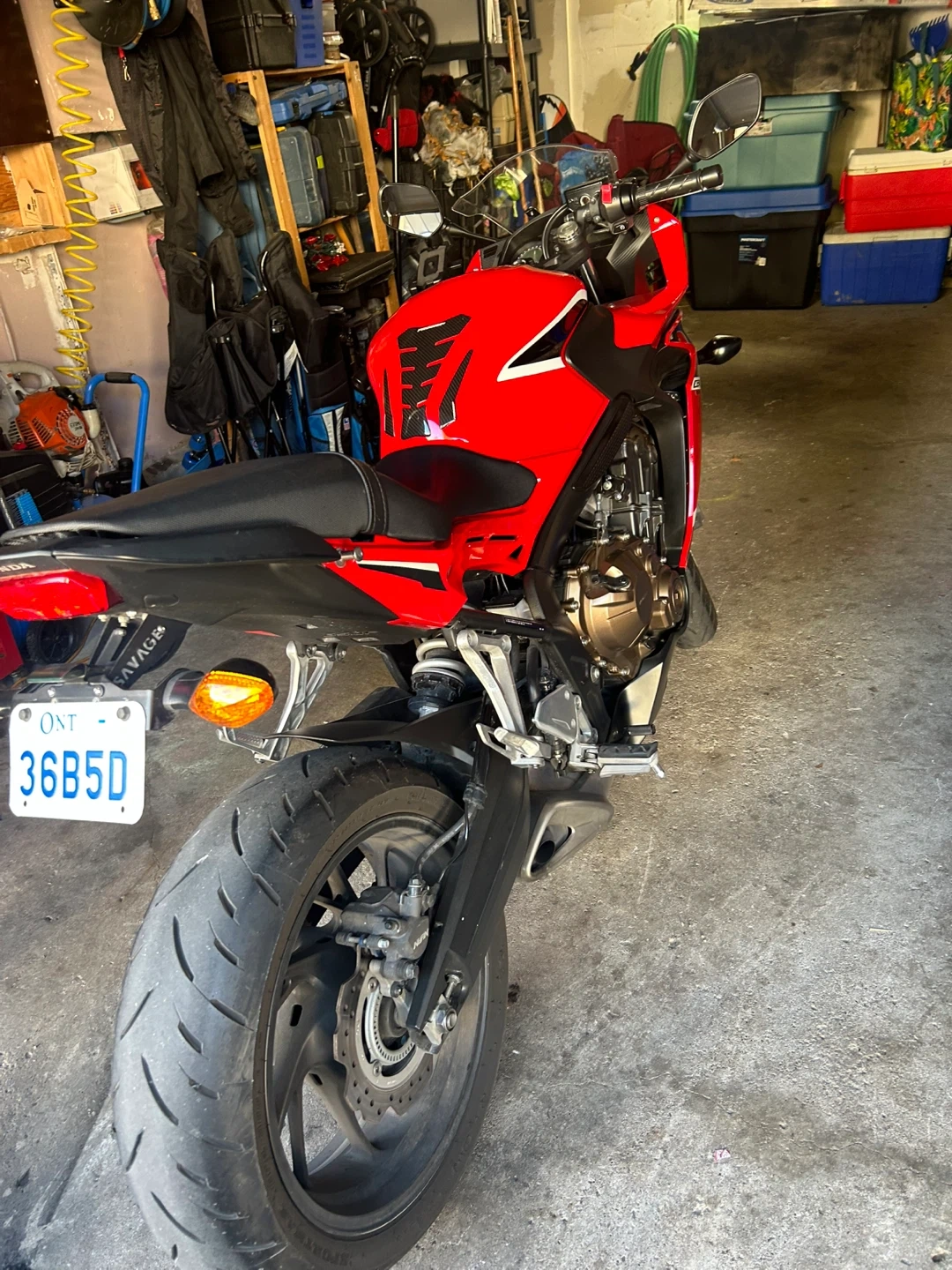 Selling a Honda CBR650F motorcycle. It's red and appears to be in good condition! Mileage is 14644 km. If you are interested, please message me! I'm selling my Honda CBR650R, a sleek and powerful sportbike with a 649cc engine and manual transmission, perfect for thrilling rides. This used bike has 14644 kilometers on it. With its striking red colour, this motorcycle is sure to turn heads wherever you go. Additional features include: * Engine Displacement: 649cc * Kilometers: 14644 I've done some research, and similar bikes are listed on Kijiji for around $7,000 to $10,000. Given the bike's condition, I've priced it fairly for a quick sale. If you are reading this ad, YES, it's still available! Read carefully this bike has a Lien on it so it’s priced to sell if you know what to do with it come get it as it was part of a bankruptcy bikes worth 8000$ all day I’m selling for 3400$obo comes with ownership and keys bike is pretty much brand new.