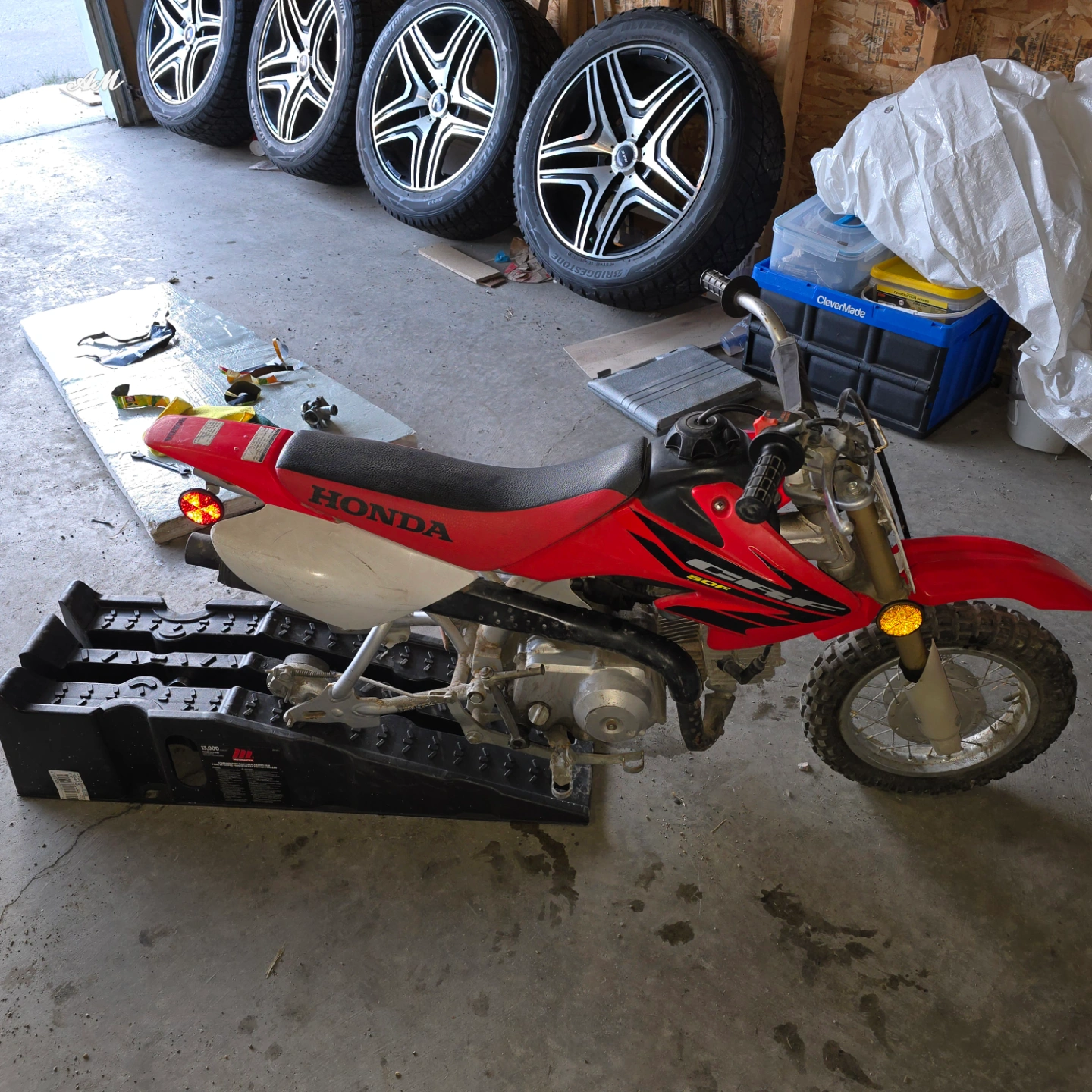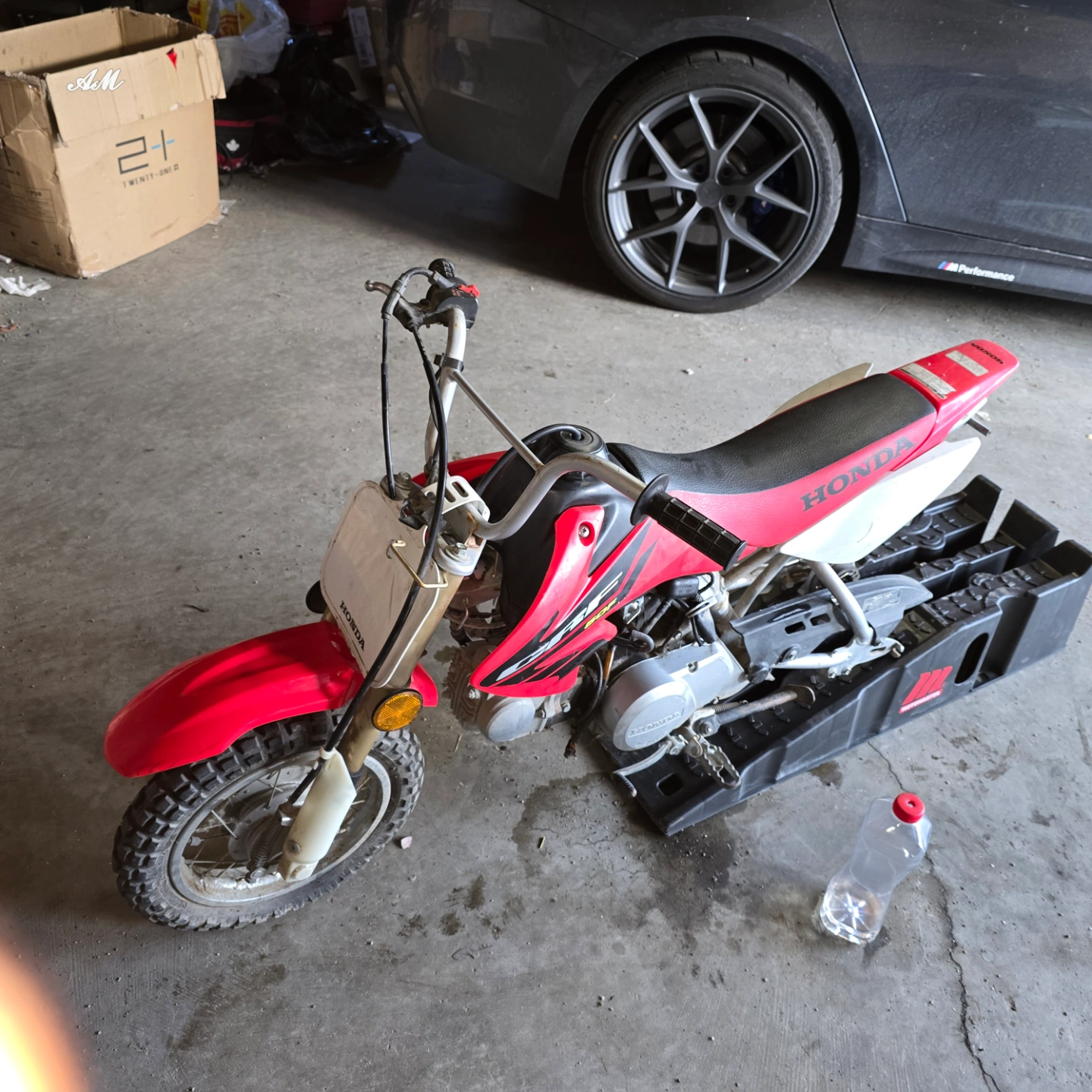 2004 Honda CRF 50F Runs amazing maybe needs a bit of a tune to get it to idle but other than that its perfect fairings are in great condition Needs a rear wheel and maybe a new petcock since the strainer is bad 850 kinda negotiable (these sell for 1300+ in running condition)