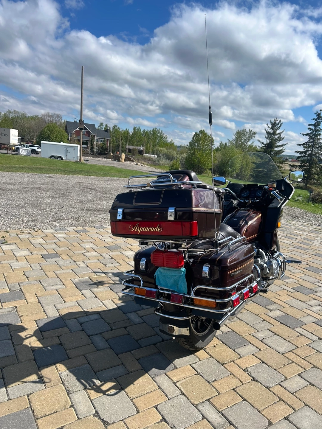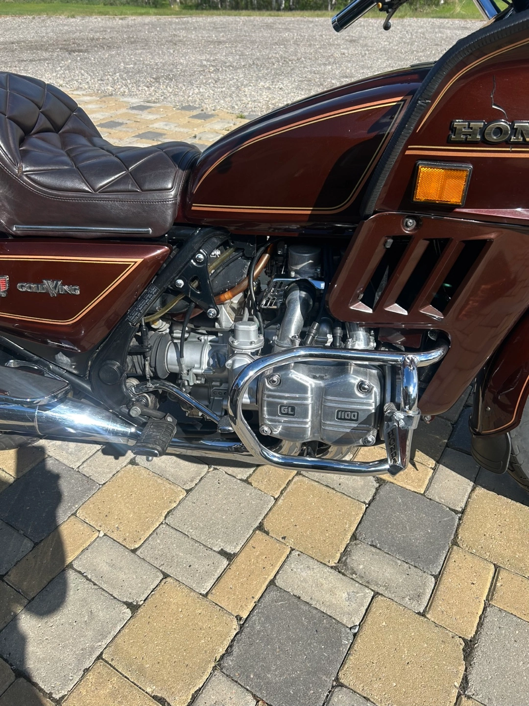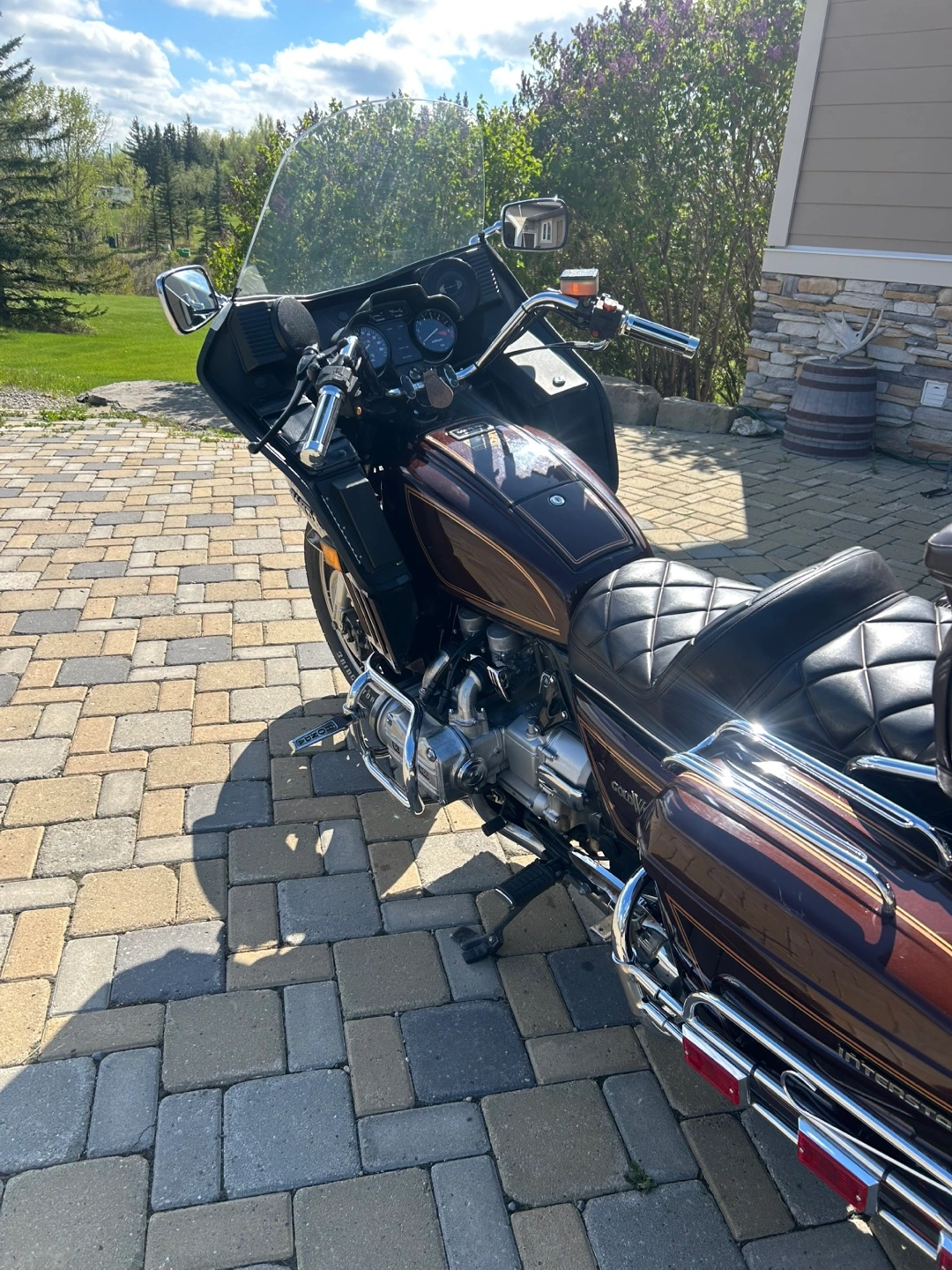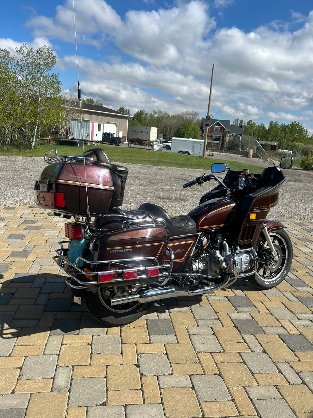 Selling a Aspencade GoldWing 1983 Interstate motorcycle. It features a distinctive brown and chrome design with a comfortable quilted seat. The bike includes an Aspencade trunk and a front windscreen for added comfort on longer rides. This model also has a GL 1100 engine. This bike is really easy to ride so great for beginners or long time rides that want something cool and fun. Selling for $3600 obo.