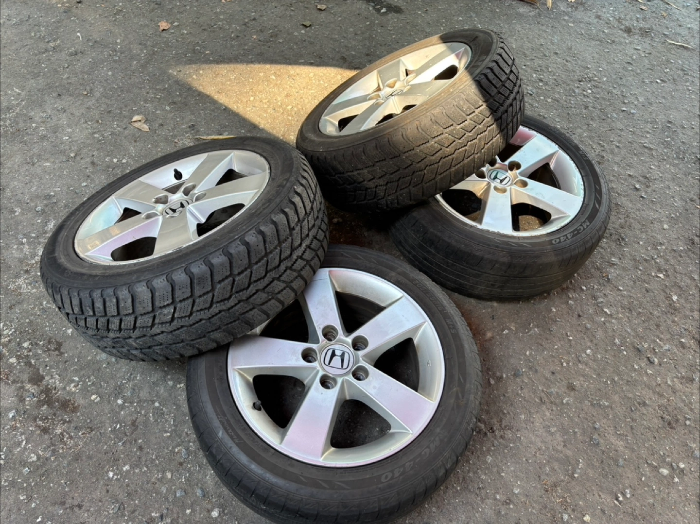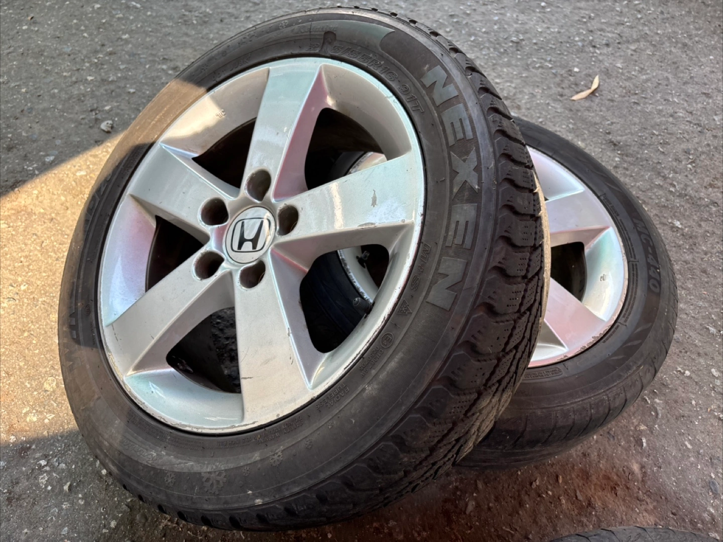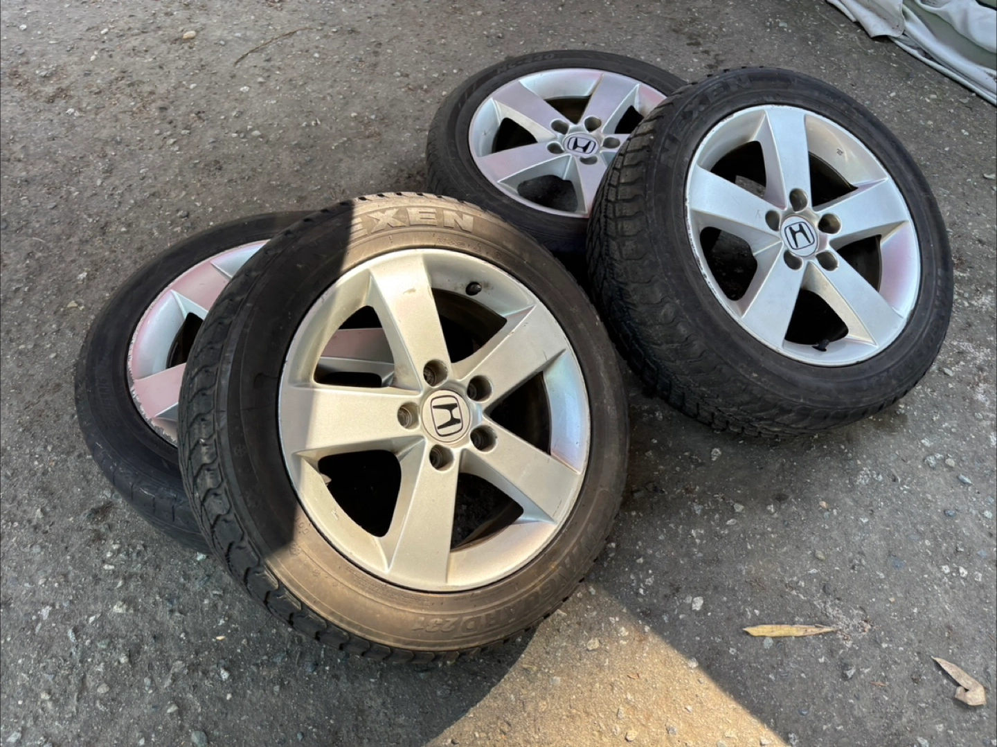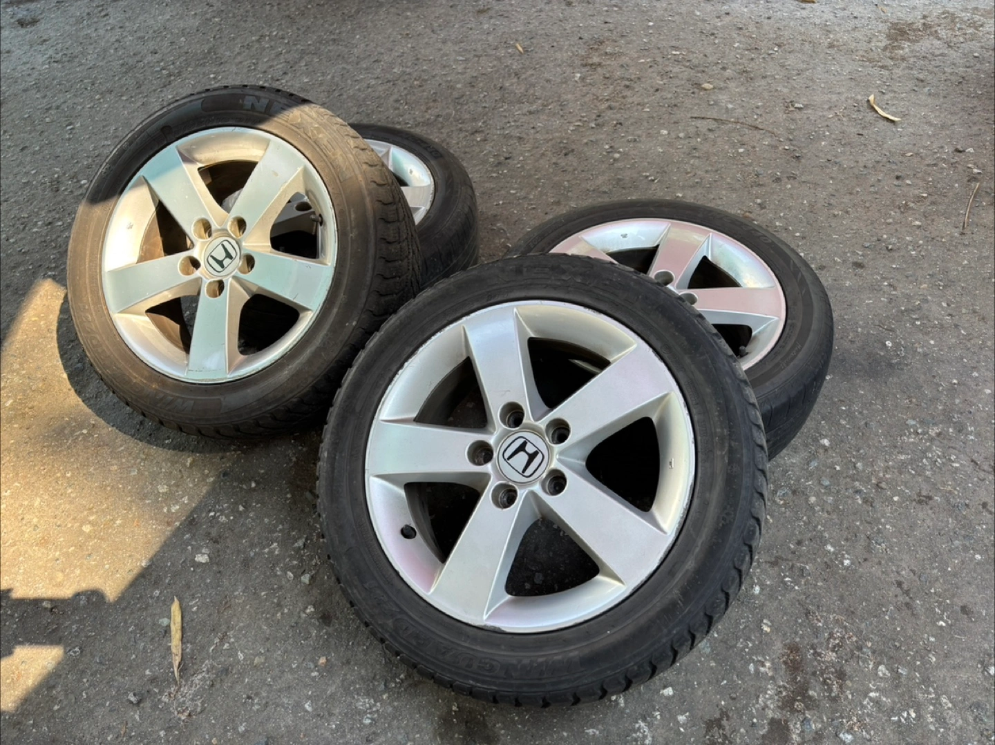 Selling a set of four Honda rims with tires. They're in used condition but still have some life left in them. Great for winter tires or as a spare set!