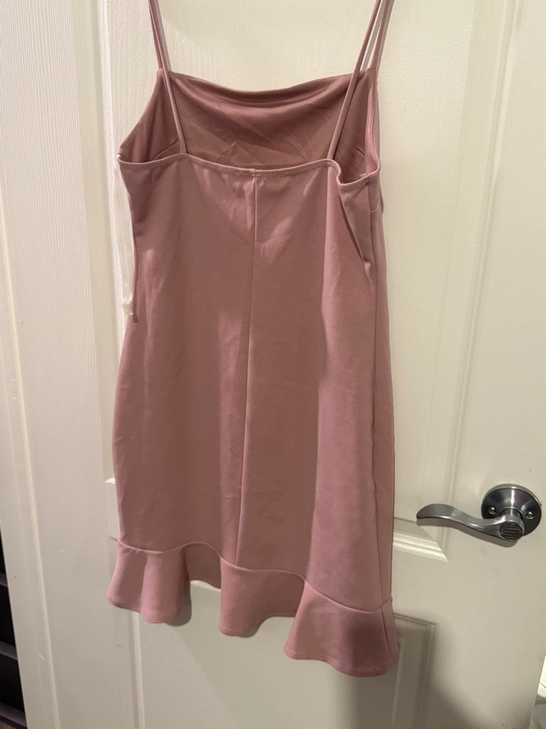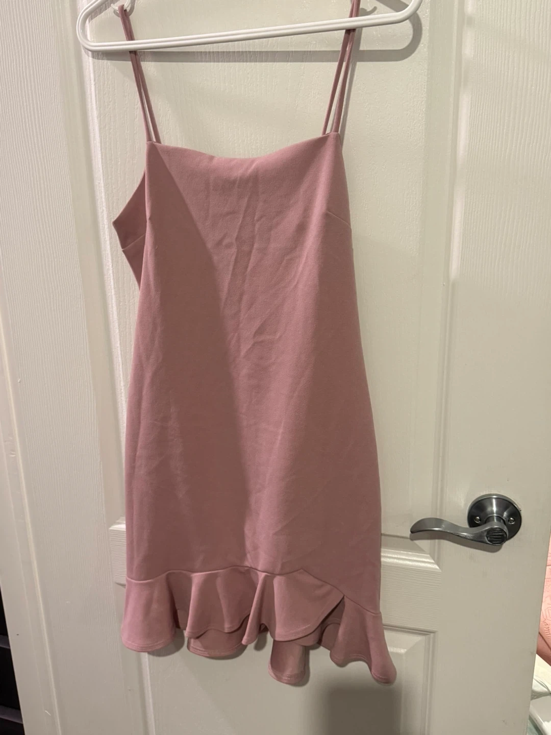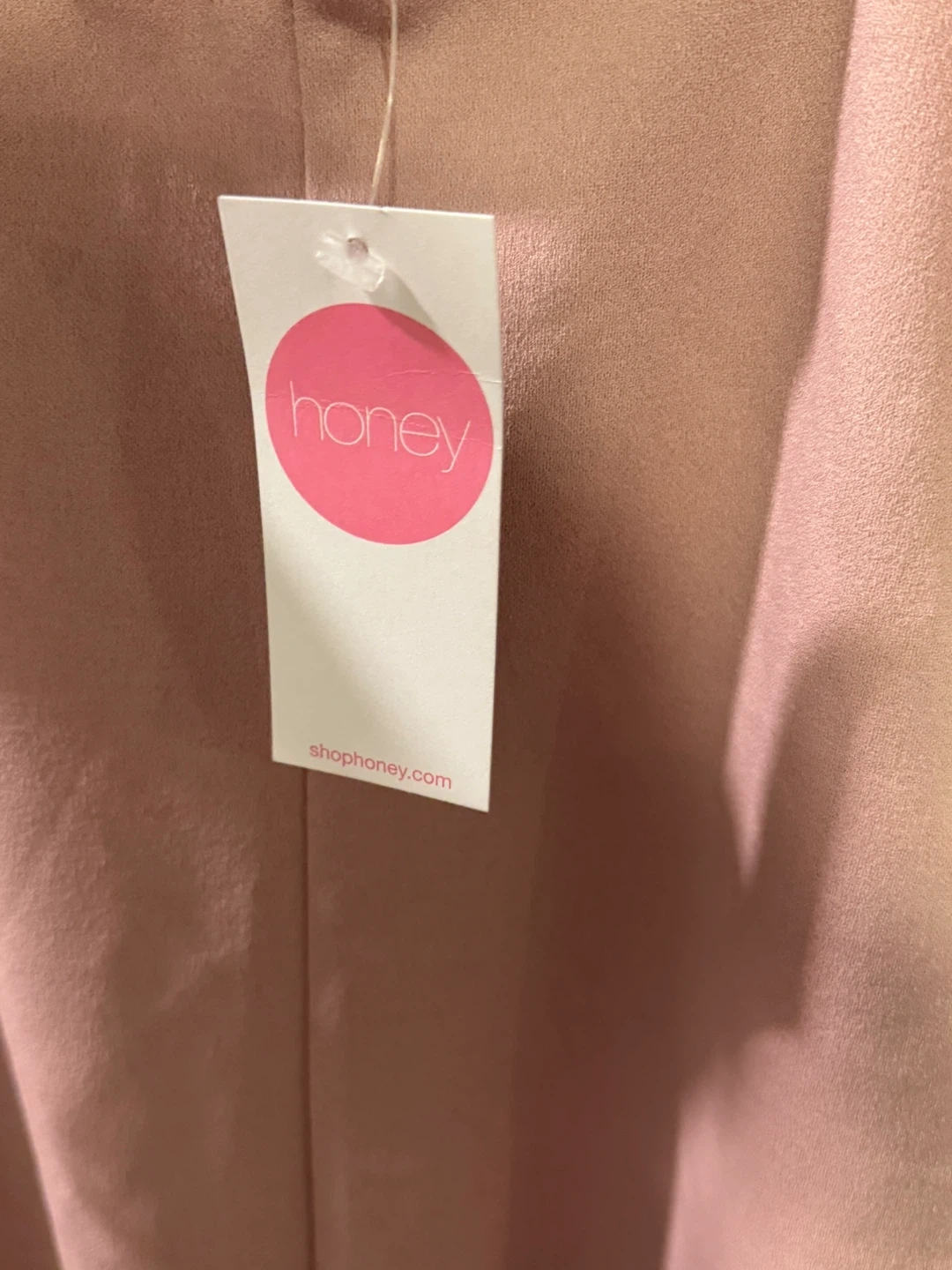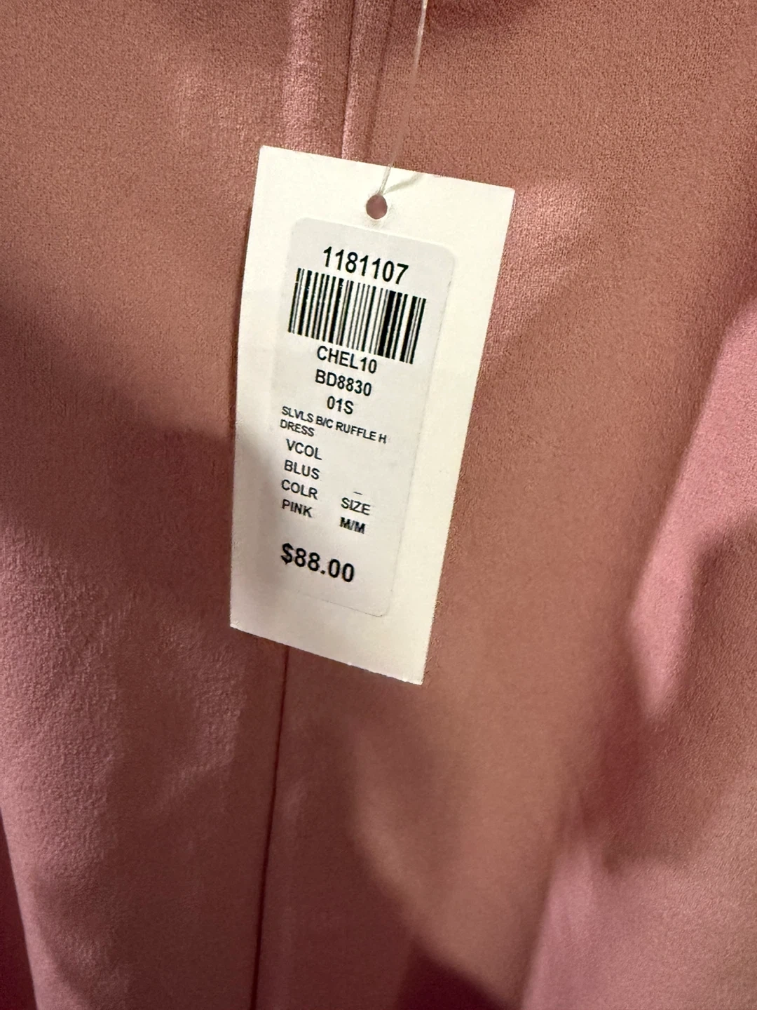 This is a really cute pink dress from Honey! It's a size M/M and features a stylish ruffle hem. The tag shows it was originally bought for $88. It's in great condition and ready for a new home