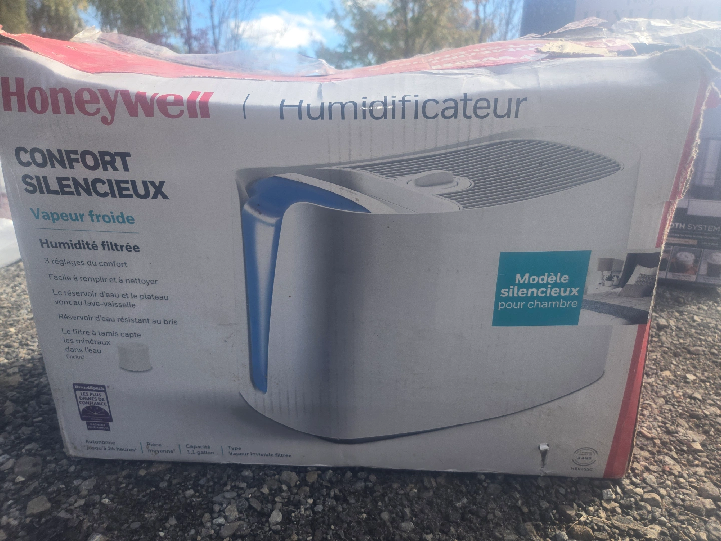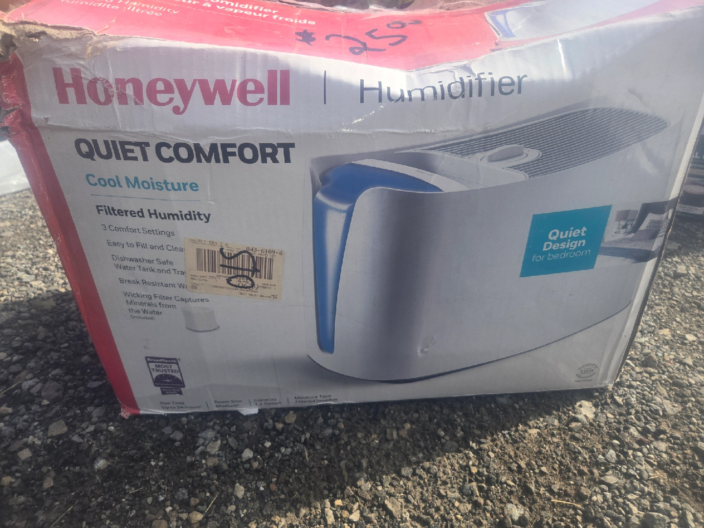 Selling a Honeywell Quiet Comfort Cool Moisture Filtered Humidifier. It has 3 comfort settings and is easy to fill and clean, with a dishwasher-safe water tank and tray. It also has a wicking filter that captures minerals from the water. It's designed for quiet operation in the bedroom. It is Brand new just don't have the box for it