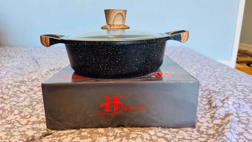 PRODUCT FEATURES 1. Manufactured with all-natural mineral ingredients, marble coating is free of PFOA, 2. Natural minerals that have been added to the coating further enhance its non-stick function allowing healthier cooking without food sticking to the cookware. 3. Highly durable marble coating on both the in/exterior of the cookware makes it easy to clean even after repeated use. 4. Dishwasher-safe and easy to clean with small amount of detergent. 5. Brings vibrant color to your kitchen, USAGE 1. Use oil when cooking for the first time to extend the life of the coating. 2. Always pay attention when preheating to prevent overheating and fire. 3. Using low to medium flame will gain better cooking results. 4. Although the coating is very durable, use with care when using metal or sharp tools on product. 5. Do not use the lid while cooking in the oven. 6. Always keep cookware clean when not in use. 7. Pay special attention to burns due to steam from knob while cooking