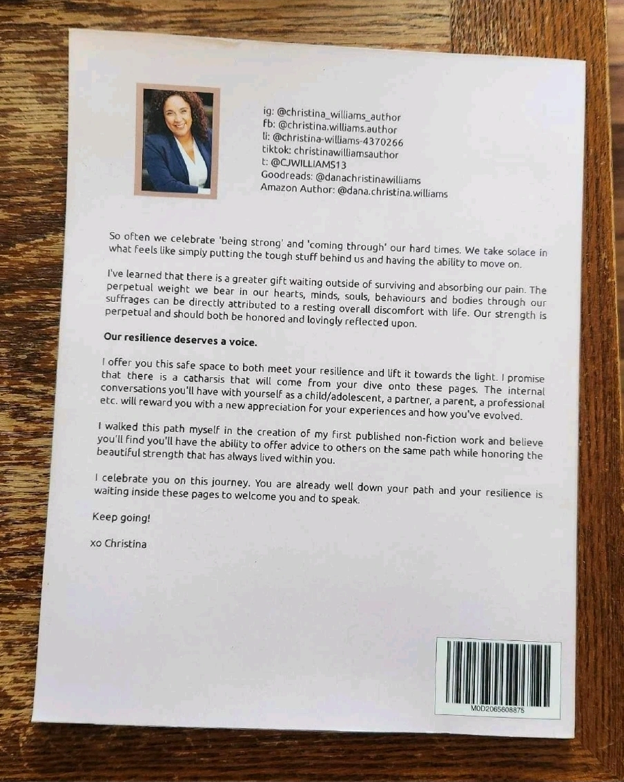 Selling "Honoring Your Resilience: Celebrating Your Strength With Words" by bestselling author Dana Christina Williams. It's a guided journey to help you celebrate being strong and coming through hard times. This book offers a safe space to meet your resilience and lift it towards the light. A great read for anyone on a path of self-discovery and healing