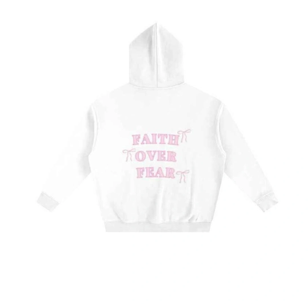 Selling a white hoodie from Soulful the Clothing Brand! It features a cute design with the phrase 'Faith Over Fear' on the back. Perfect for staying cozy and stylish! - I've been working on something called Soulsoaks.co a bath and skin care based business and thought to add something you can wear aswell! This is the faith over fear hoodie. This hoodie come with great quality, and many sizes. The hoodie is made just for you and shipped right to your mailbox with free shipping! Message me to order or for any inquiries
