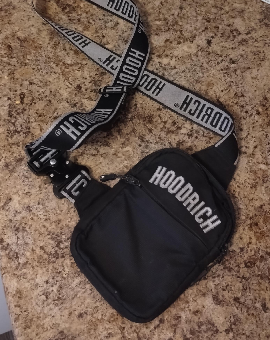 Selling a Hoodrich crossbody bag in black. It's in great condition and ready for a new home! The strap features the Hoodrich logo. Perfect for carrying your essentials on the go