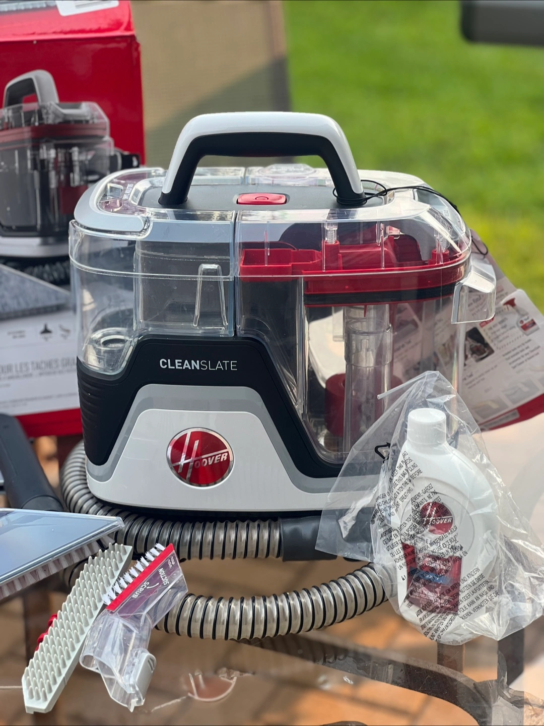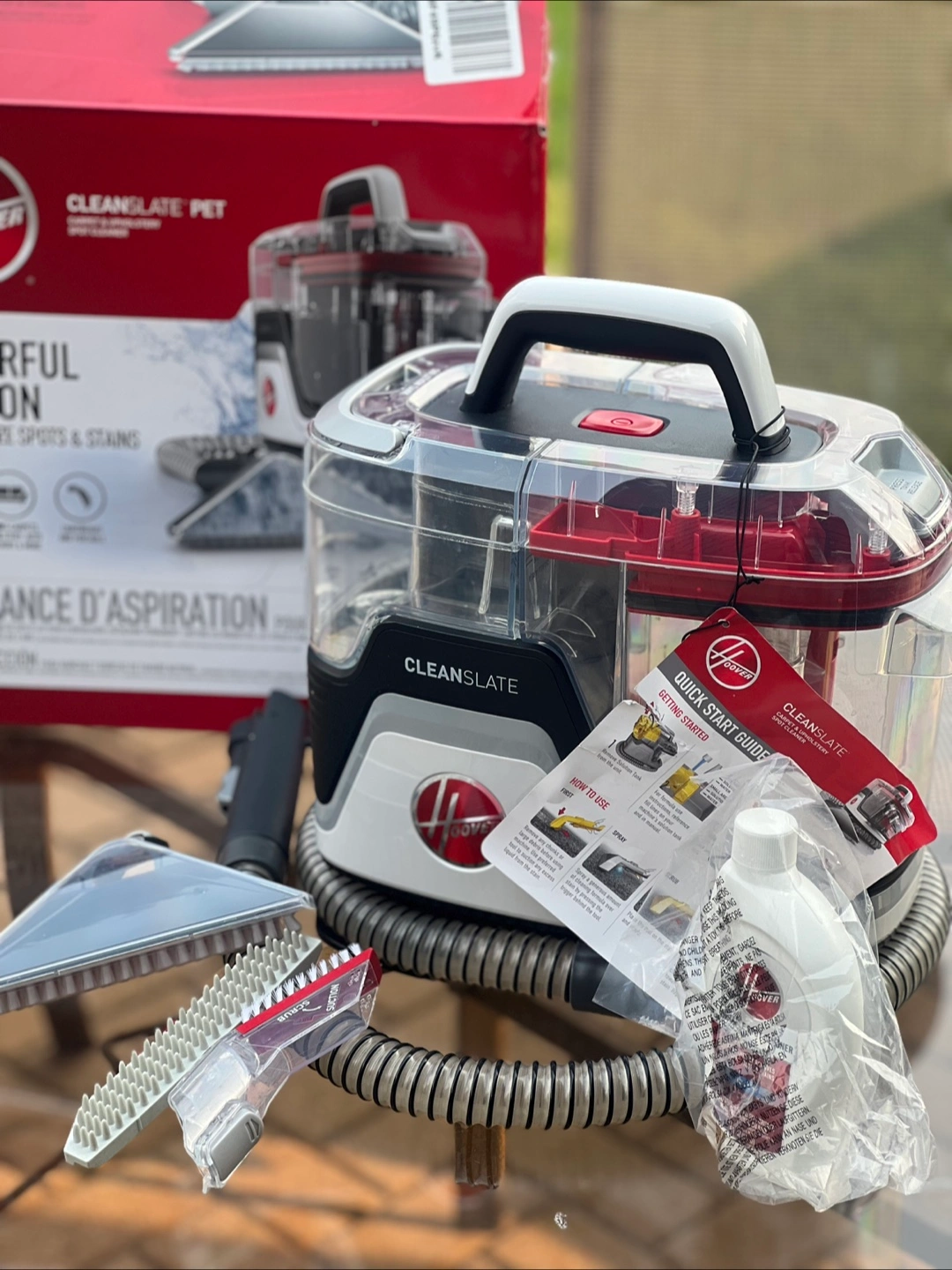 Selling a Hoover CleanSlate Pet carpet and upholstery cleaner! It's great for tackling those tough stains and spots left by pets or everyday messes. It comes with the box and all the original attachments, including a bottle of cleaning solution and a quick start guide. It is in great condition and ready to use!