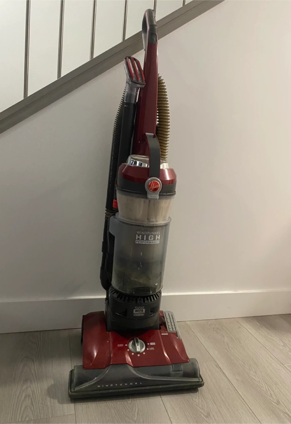 Selling a Hoover WindTunnel High Performance vacuum cleaner. It's in good working condition and ready to help keep your home clean! Features include HEPA filter and carbon filtration.