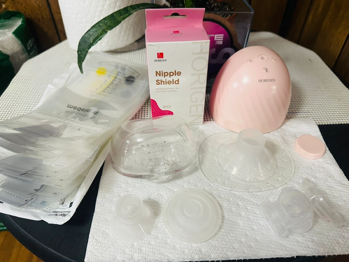 HORIGEN Breast Pump with Nipple Shields and Storage Bags