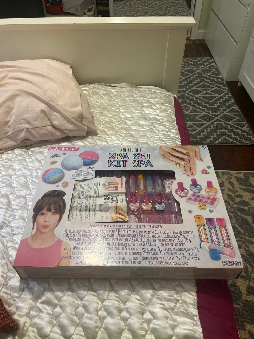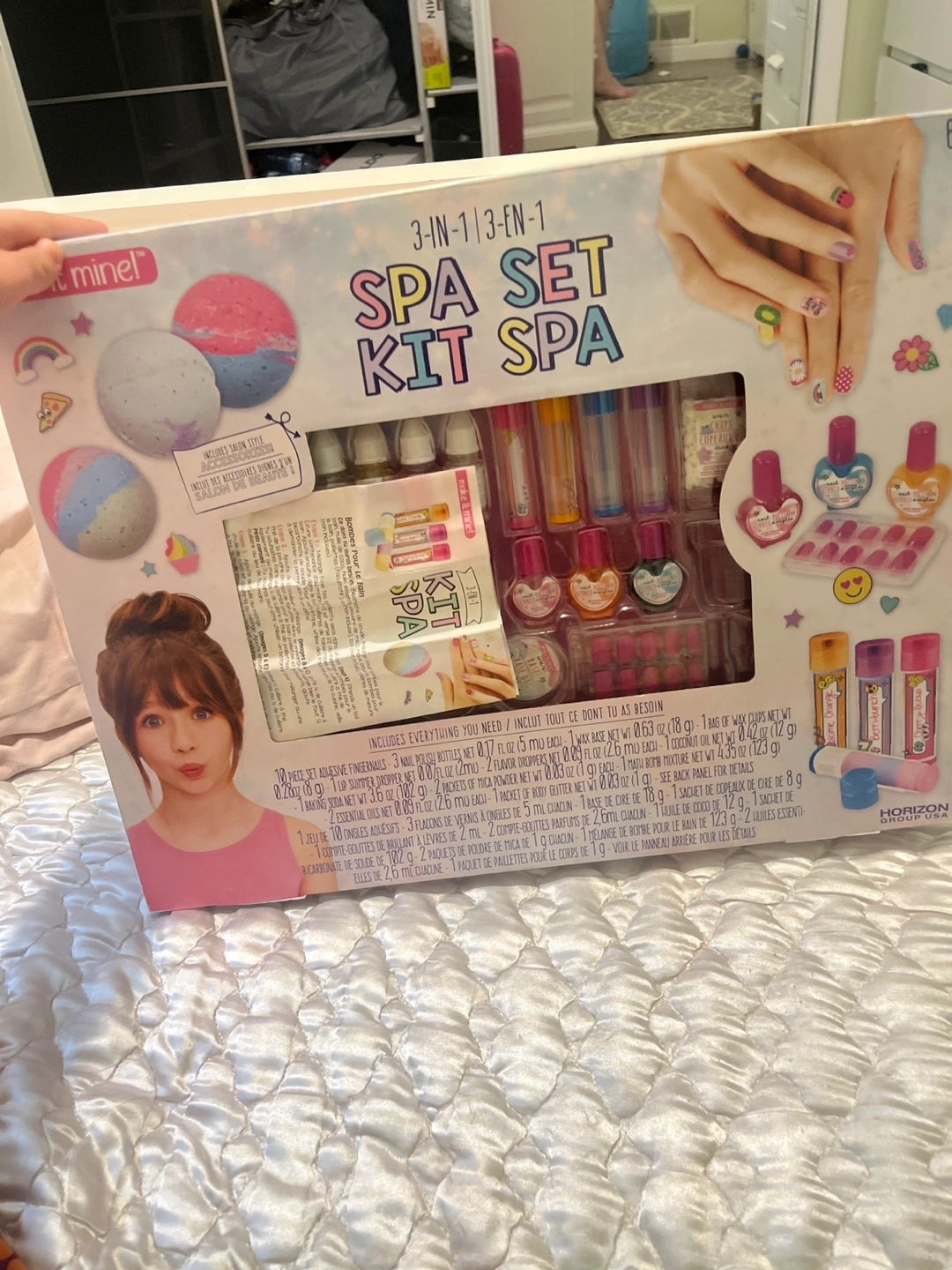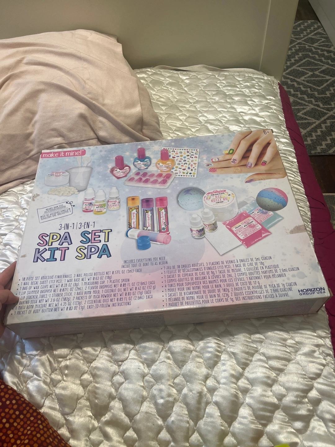 This Horizon Group 3-in-1 Spa Set Kit includes everything you need to make your own spa treatments! It comes with adhesive fingernails, nail polish, wax base, shimmer dropper, baking soda, mica powder, essential oils, and body glitter. Perfect for a fun spa day at home!