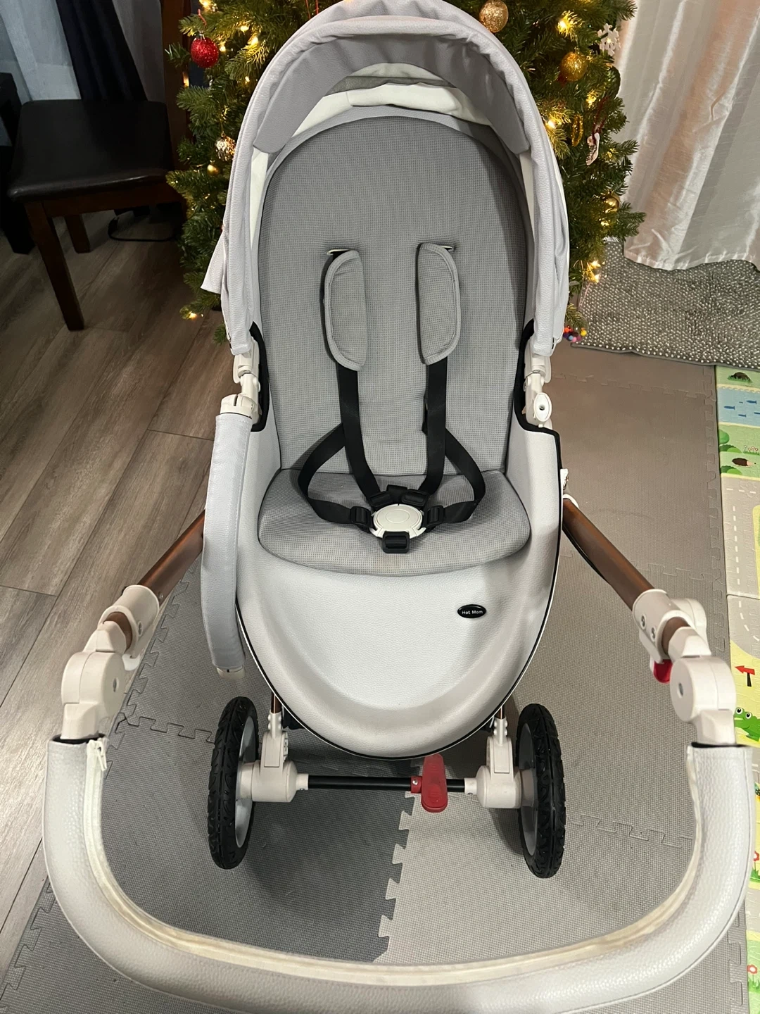 Selling a Hot Mom baby stroller in a stylish grey and rose gold colour scheme! This stroller is in great condition and ready for a new family. It's a smooth ride for your little one!