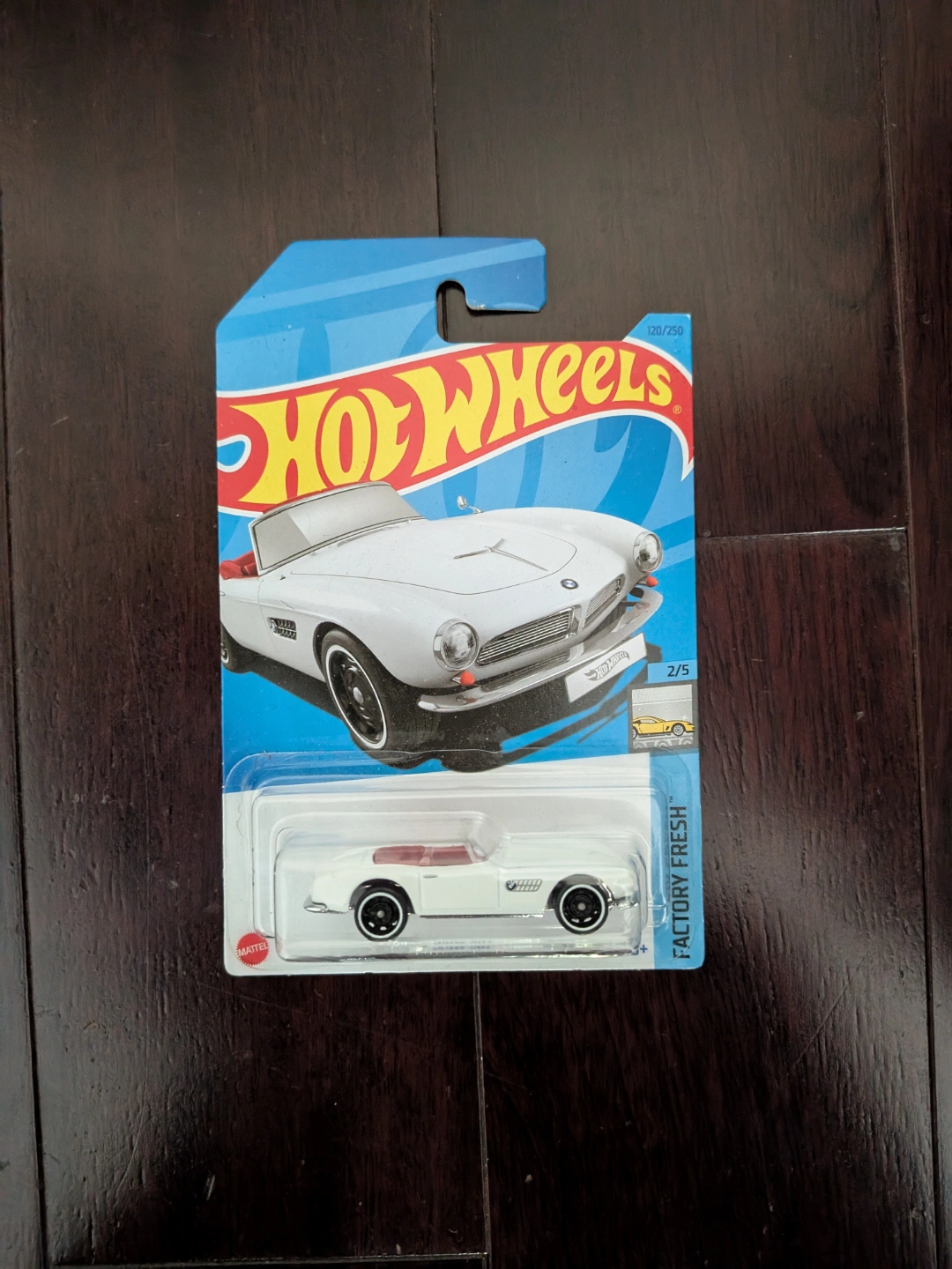 Hot Wheels collectible car. White and red BMW 507. New in package. Located in Brantford.