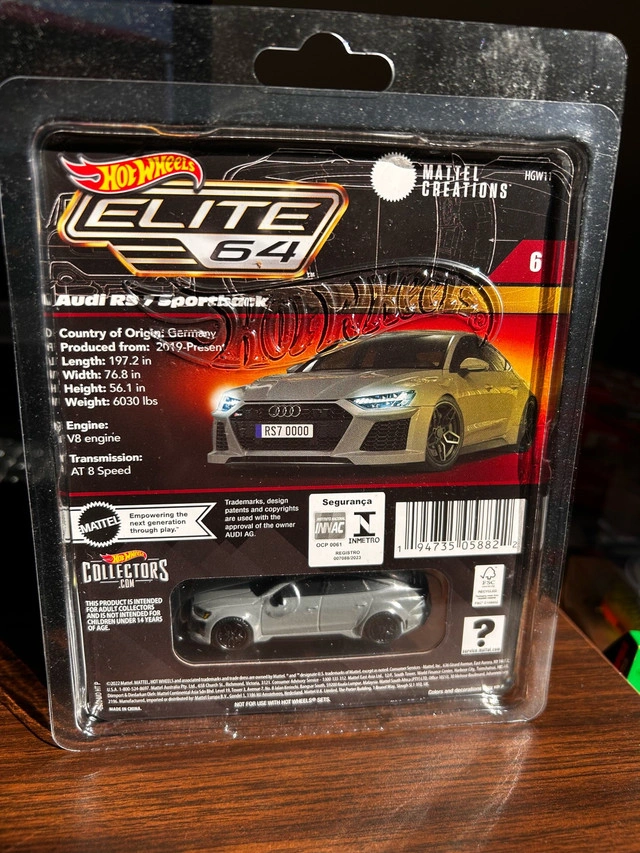 Add a sleek Hot Wheels Elite 64 Audi RS 7 Sportback to your collection! This miniature marvel captures the essence of the luxury sports car. It's in new condition, still sealed in its original packaging. This model is perfect for collectors and enthusiasts alike, ready to rev up your display shelf. Packaged in a kar keepers clamshell case. Specifications: -Brand: Hot Wheels -Series: Elite 64 -Vehicle: Audi RS 7 Sportback -Condition: New Ready to give this stylish speedster a new home? If the ad's up, it's still available! Cash only