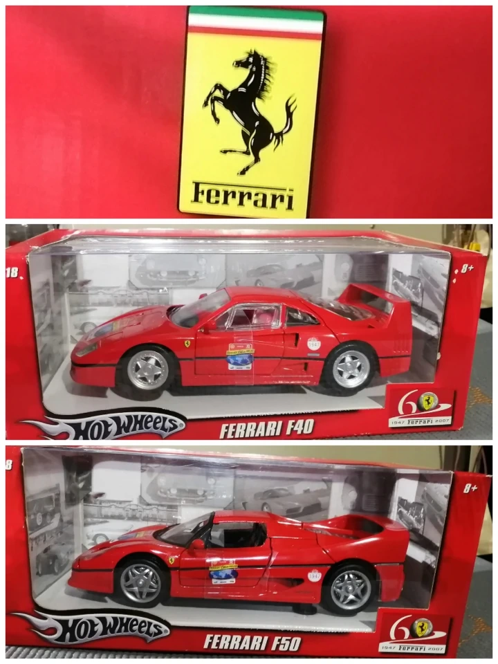 I'm selling a couple of Hot Wheels Ferrari diecast cars! 60th Anniversary Edition. One is a Ferrari F40 and the other is a Ferrari F50. Both are in their original boxes and in new condition. Perfect for any Ferrari or Hot Wheels collector! 100.00 each.
