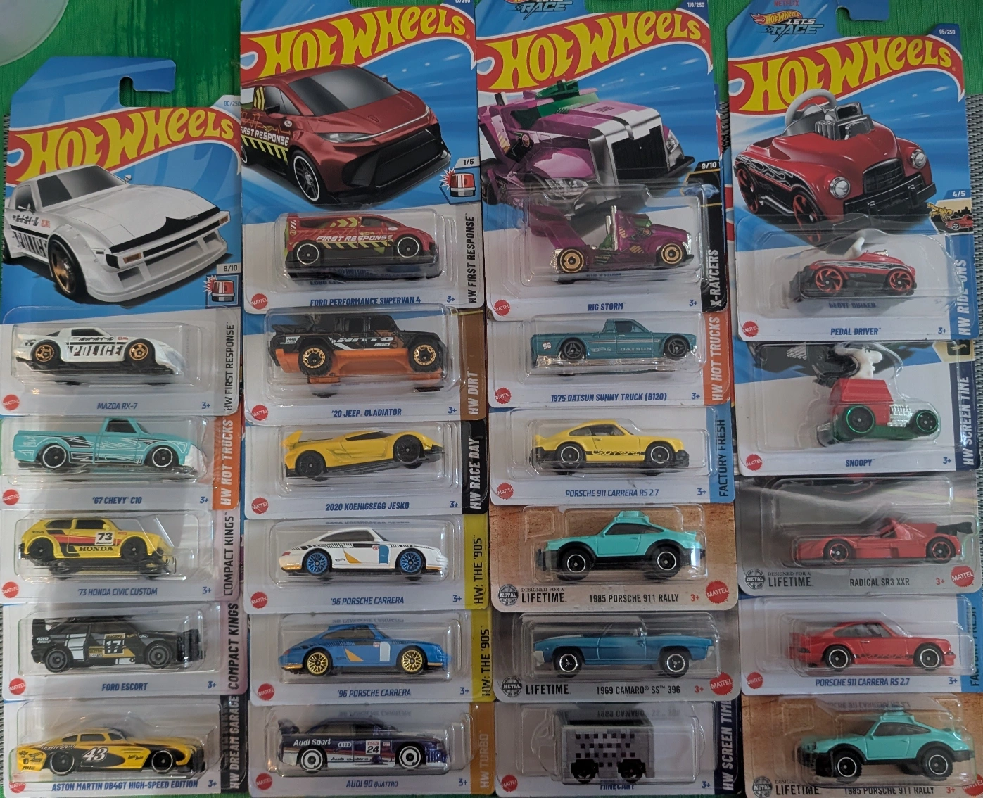 ---INFORMATION--- 22 Carded Hot Wheels Cars $2 each, 2 for $3, take all for $35 Pickup at Finchurst Plaza, Tim Hortons Available after 4:00-4:30 PM Any further questions, please DM me. Cash Only!