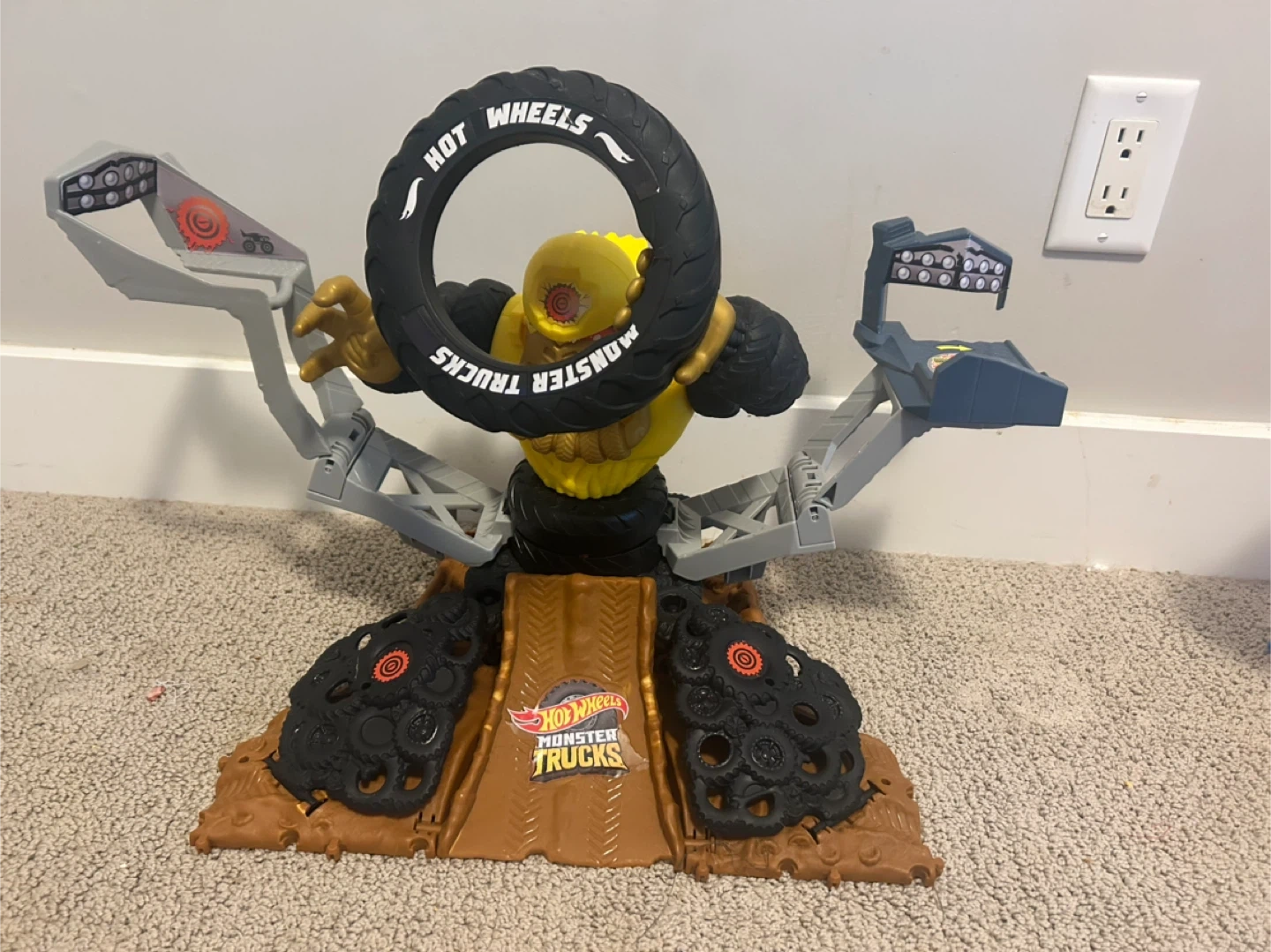 Hot Wheels Monster Trucks Arena Smashers playset is ready for action! This set features a unique smashing experience and can be connected to other sets to expand the arena. It's in great condition and ready for a new home