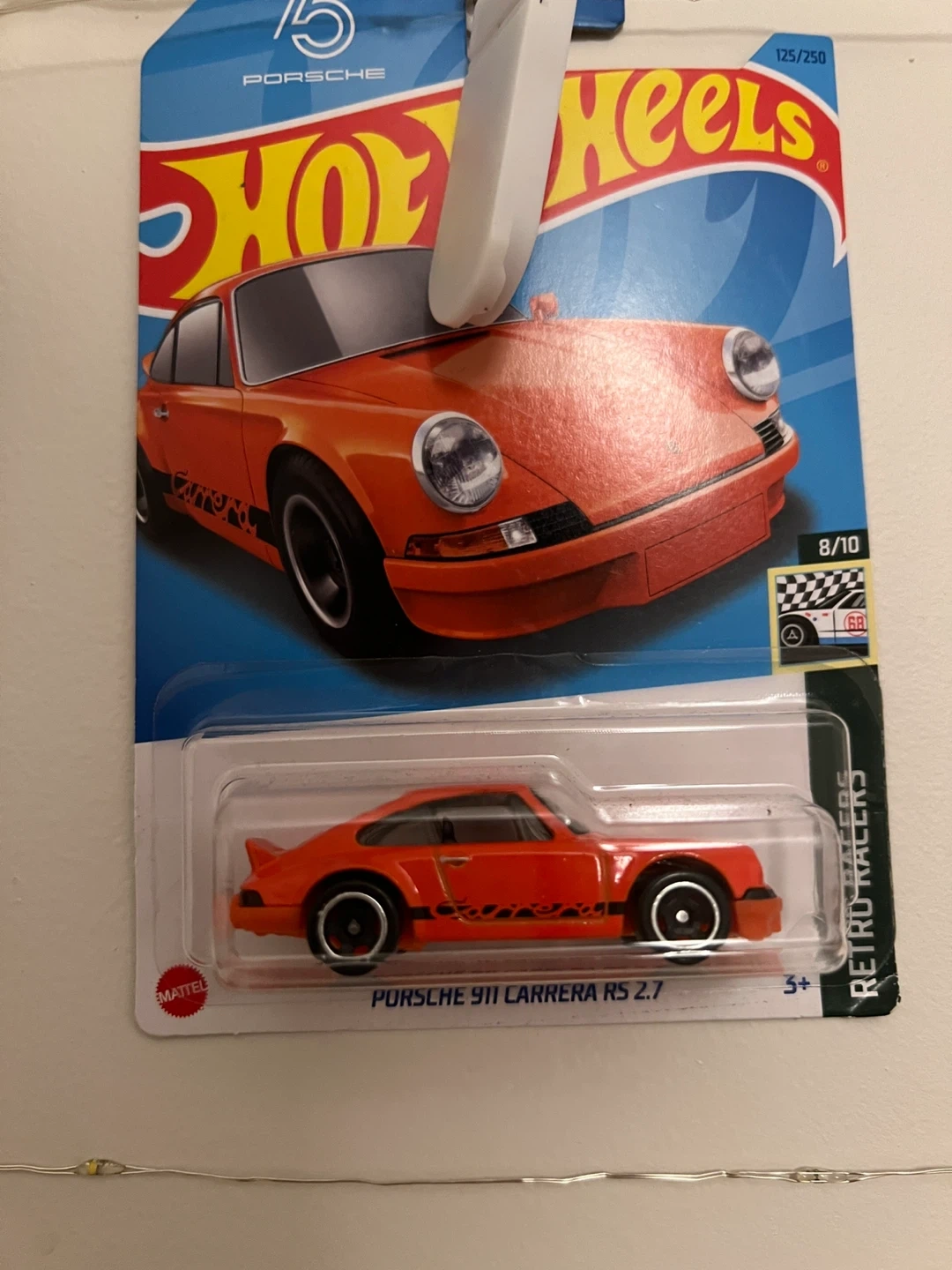 Selling a Hot Wheels Porsche 911 Carrera RS 2.7, still in its original packaging! It's part of the Retro Racers series and would be a great addition to any Hot Wheels or Porsche collection