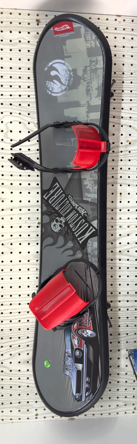 Selling a Hot Wheels snowboard. It features a cool design with a car graphic and the Kustom Kulture logo. The bindings are in red. Ready for some winter fun!