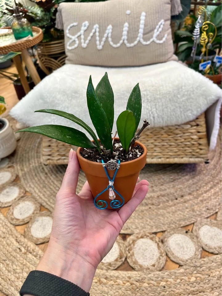 This little Hoya Publicalyx with 2 grow points comes in a 3” terracotta pot with decorative pot hanger for $10. Without Pot hanger, $7. Pick up at The Plant Witch in Erin Ridge, St.Albert Check out my other listings or go to my website theplantwitch.ca to view all my listings for different potted plant varieties, suncatchers, propagation jars, decorative pot stakes and more! 🪴🌞