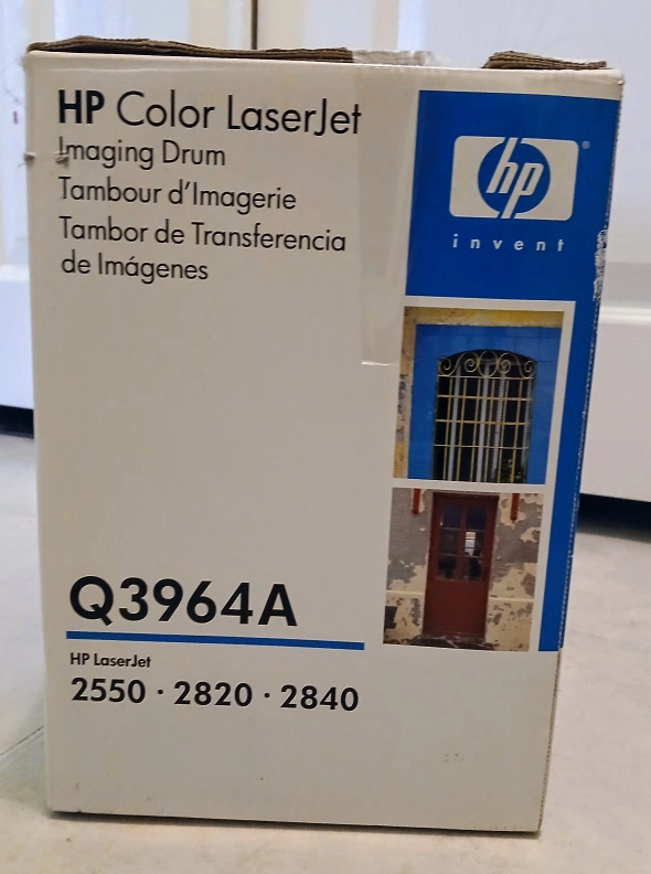 Selling an HP Color LaserJet Imaging Drum, model Q3964A. It's compatible with HP LaserJet 2550, 2820, and 2840 printers. The box is included!