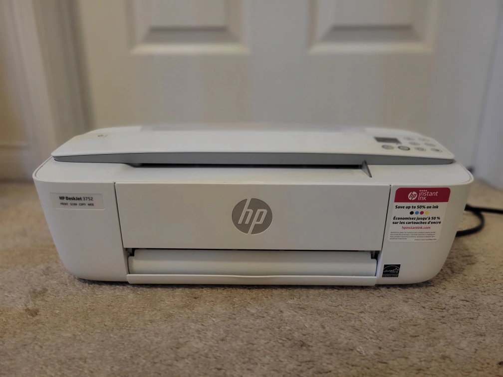 Selling a used HP DeskJet 3752 printer in white. It's a print, scan, copy, and web printer. Perfect for home or small office use! Used like new