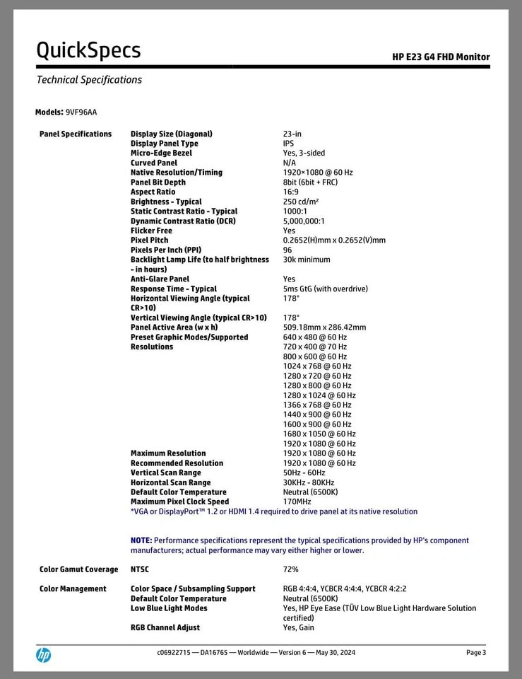 HP E23 G4 FHD Monitor Colour: Monitor - Black, Height Adjustable Stand - Silver Screen Size: 23” Display Panel Type: IPS Resolution: 1920 x 1080 @ 60Hz Other Features: [SEE PHOTO] For more info - https://h20195.www2.hp.com/v2/GetPDF.aspx/c06922715.pdf Listing Price: $100 OBO *please see more listings on my marketplace page. Pickup Required. Area: Graham Park, Burnaby.