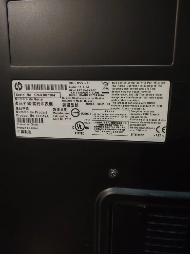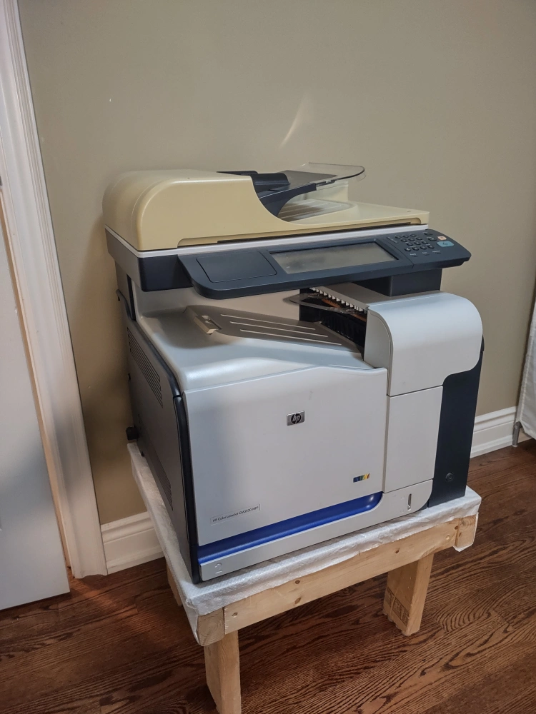 Hello, This is Sam! You may contact me at 647-889-8480. I am selling my HP LASER JET Color Printer CM3530 MFP UPD PLC 6 - it has Error 59.F0 _ All 4 Cartridges are full. It is a Multifunction Commercial Office Color Laser Printer. All 4 Cartridges are full See photos for more information Price: $45 You may contact me at 647-889-8480. Thanks, Sam