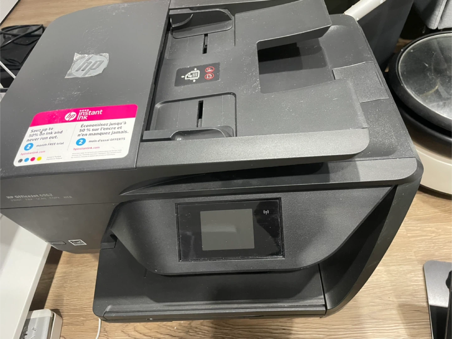 Selling a used HP OfficeJet 6960 printer. It can print, fax, scan, copy, and connect to the web. Both side printer Comes with a new black 902XL ink cartridge.