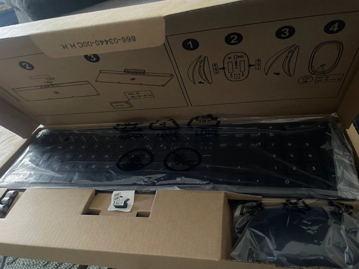 This combo includes a wireless keyboard and mouse. Never been used in it box