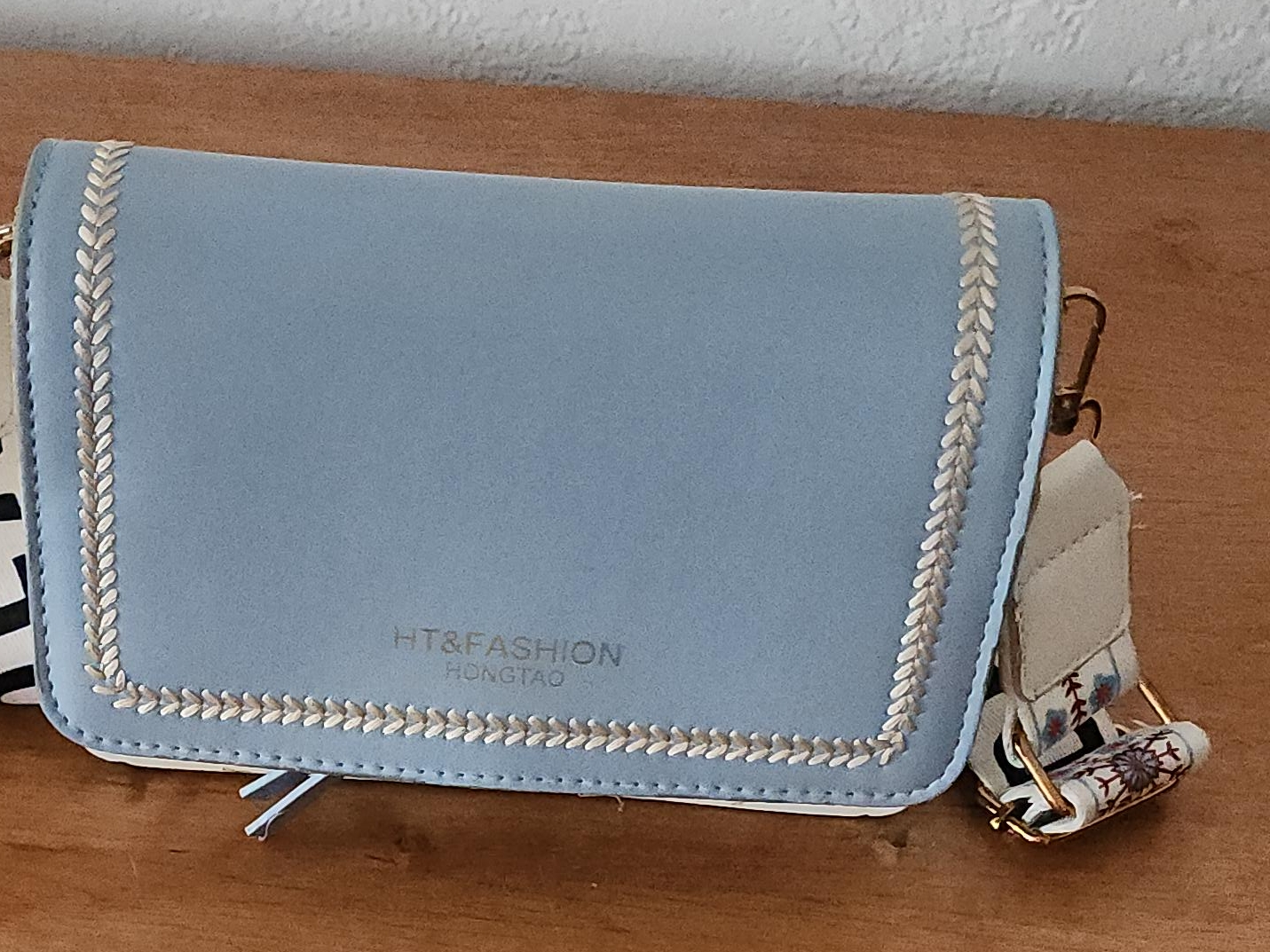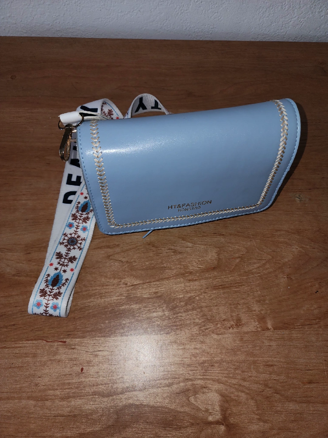 Selling a cute light blue crossbody bag from HT&FASHION. It has a unique stitched design around the edges and a fun patterned strap. Perfect for adding a pop of colour to any outfit! only used a few times, it is small but good for necessities or night out, etc asking $20 cash or etransfer or trade for artificial nails, or tattoo printer or tattoo machine.