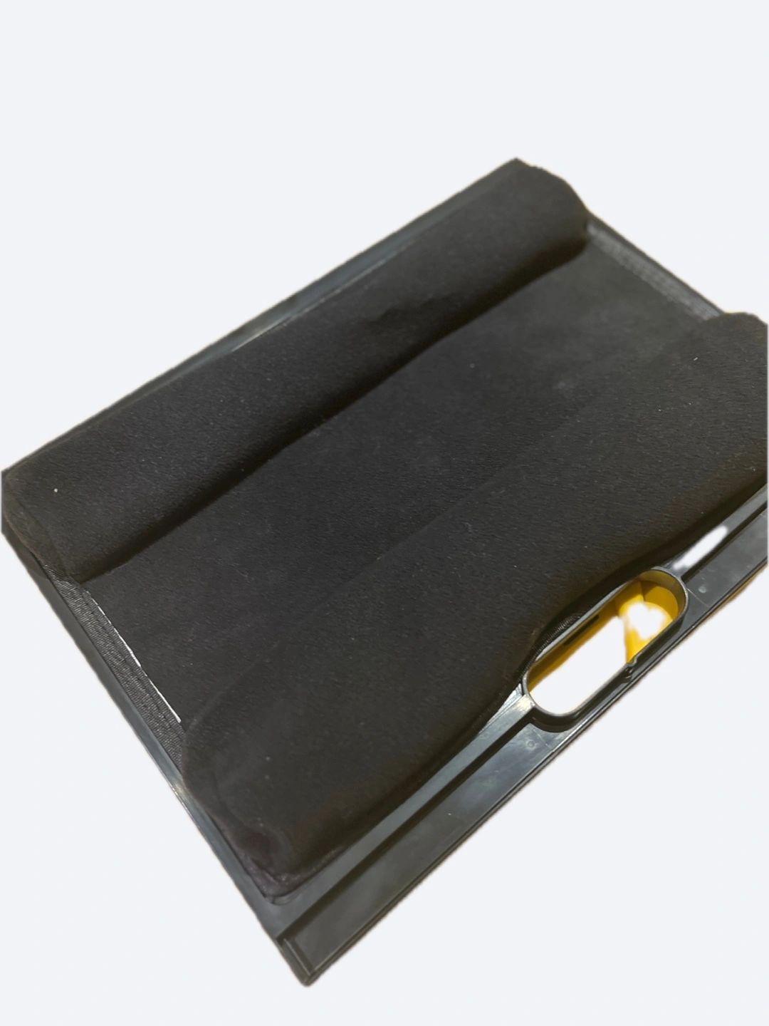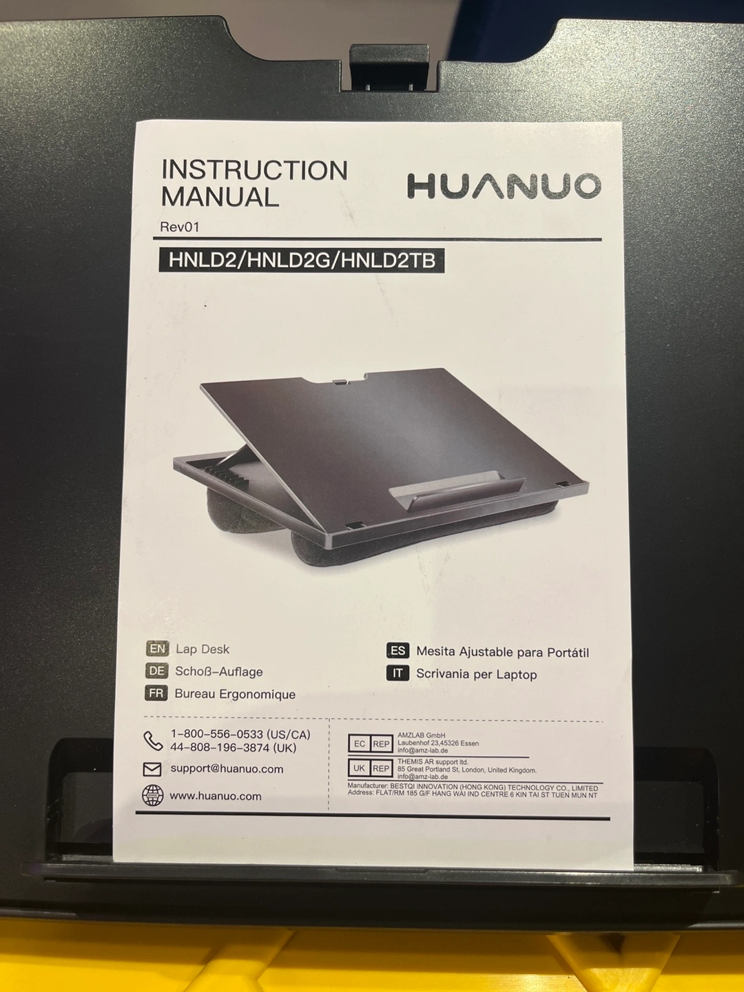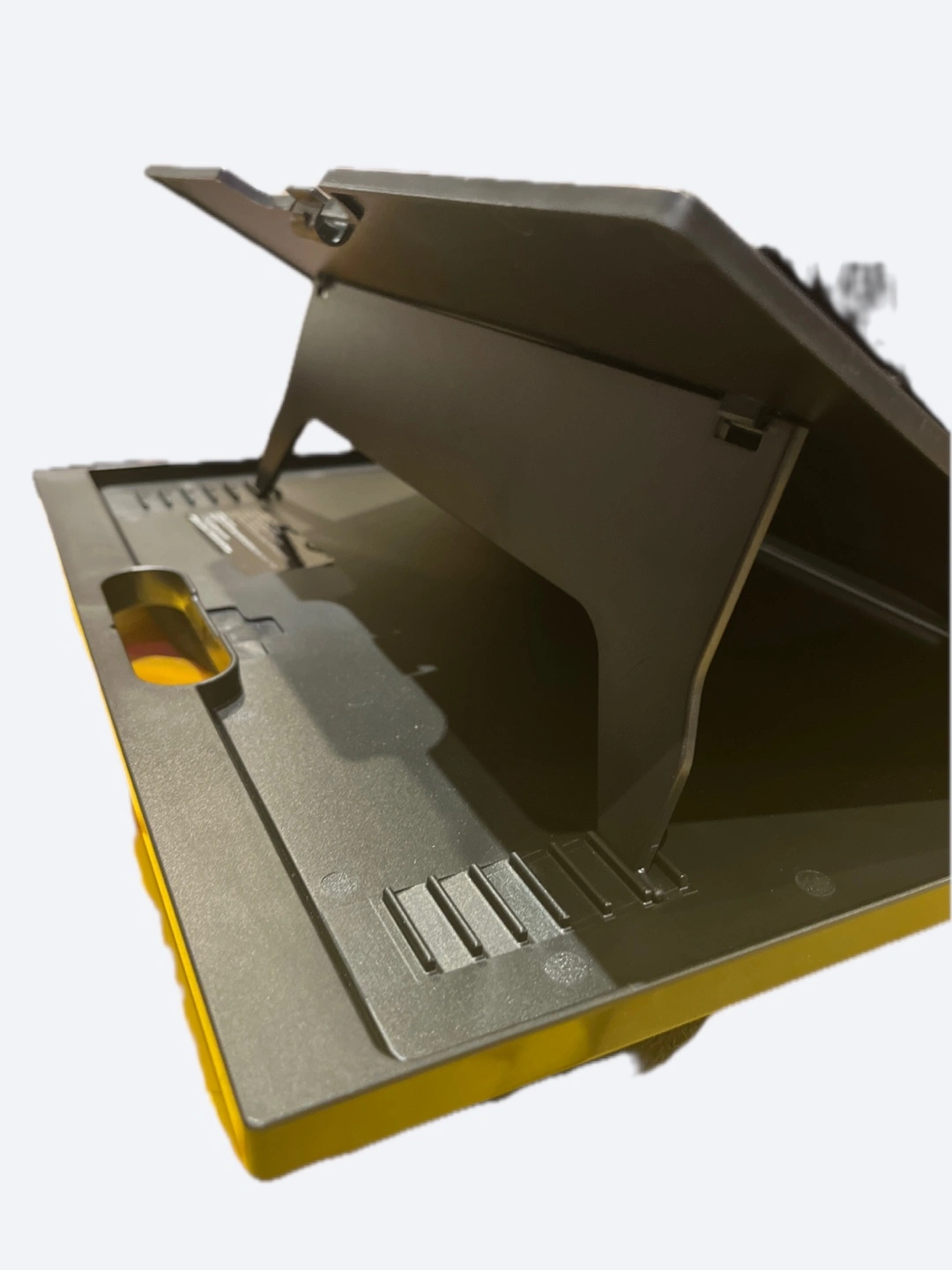💜Portable lap desk. Black with yellow base. Foldable design. Comfortable wrist rest. Ideal for laptops and tablets.