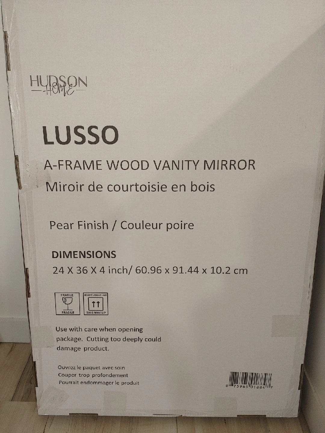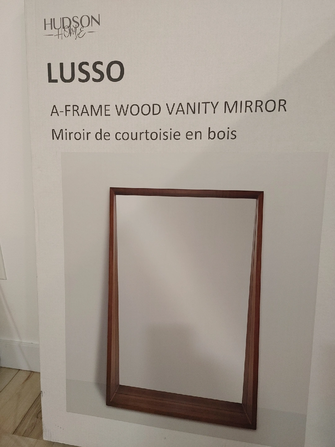 Selling a Hudson Home Lusso A-Frame Wood Vanity Mirror. It's in great condition and ready to add a touch of style to your space! The mirror features a unique A-frame design and a warm wood finish.
