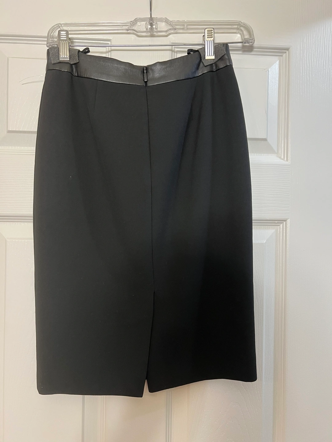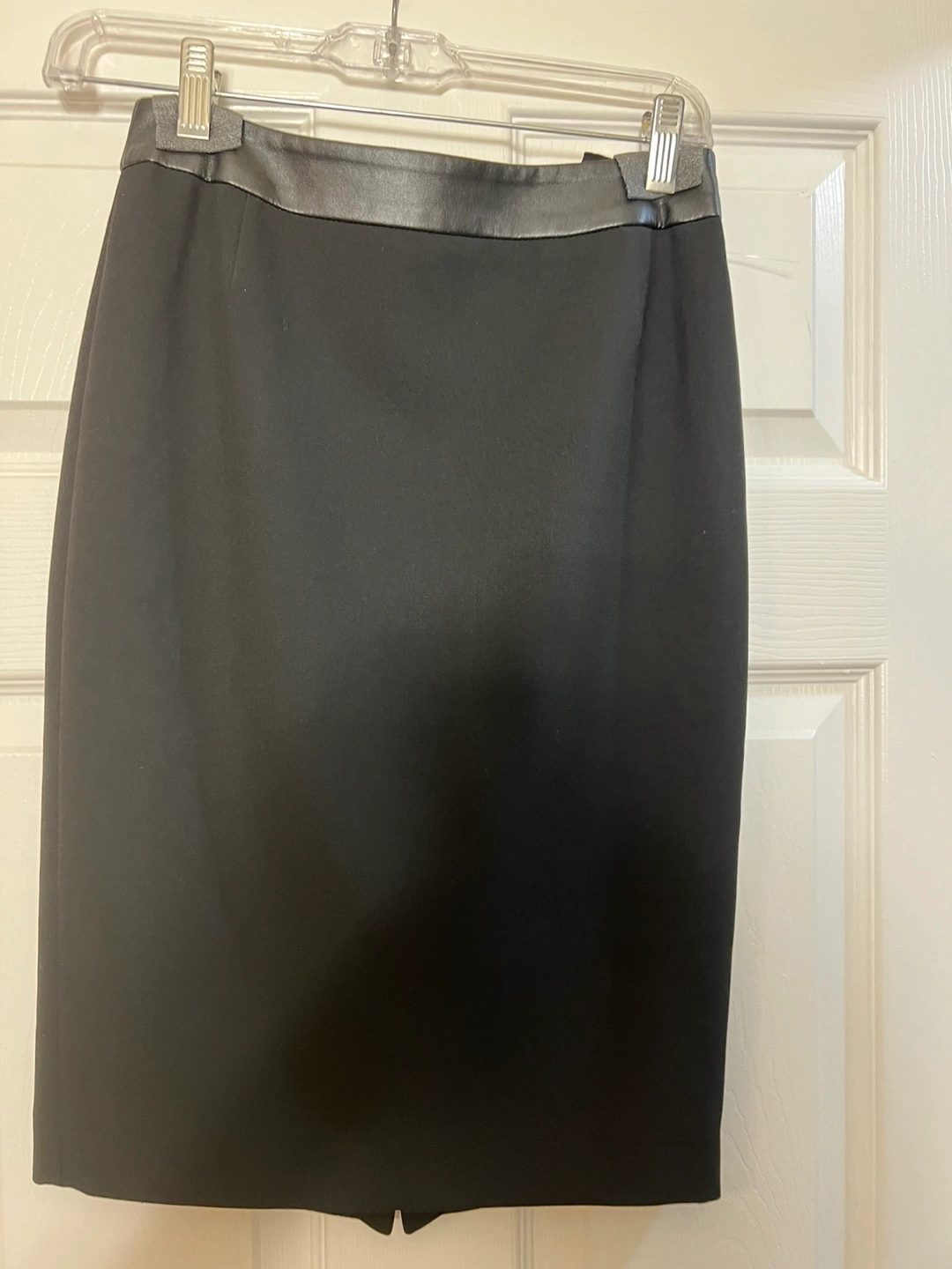 Classic Black pencil skirt. Leather waistband. Light wool Size 0. Excellent condition. Clean and ready to wear. Pick up Yonge & St Clair Cash required