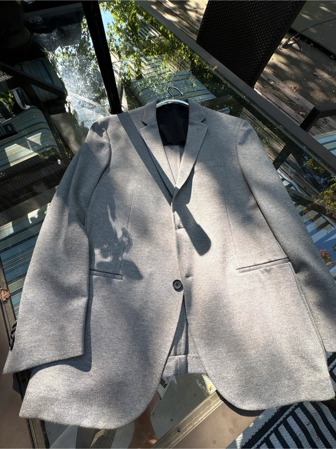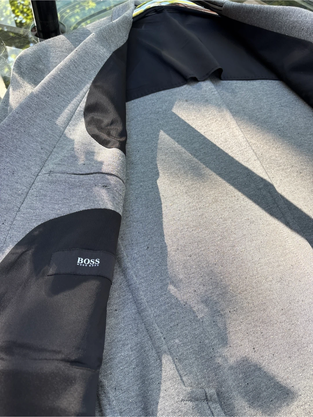 Selling a Hugo Boss blazer in grey. It's a size 44R. Great for dressing up or down!