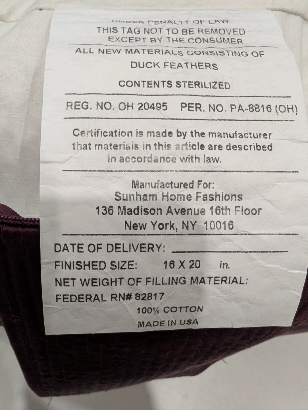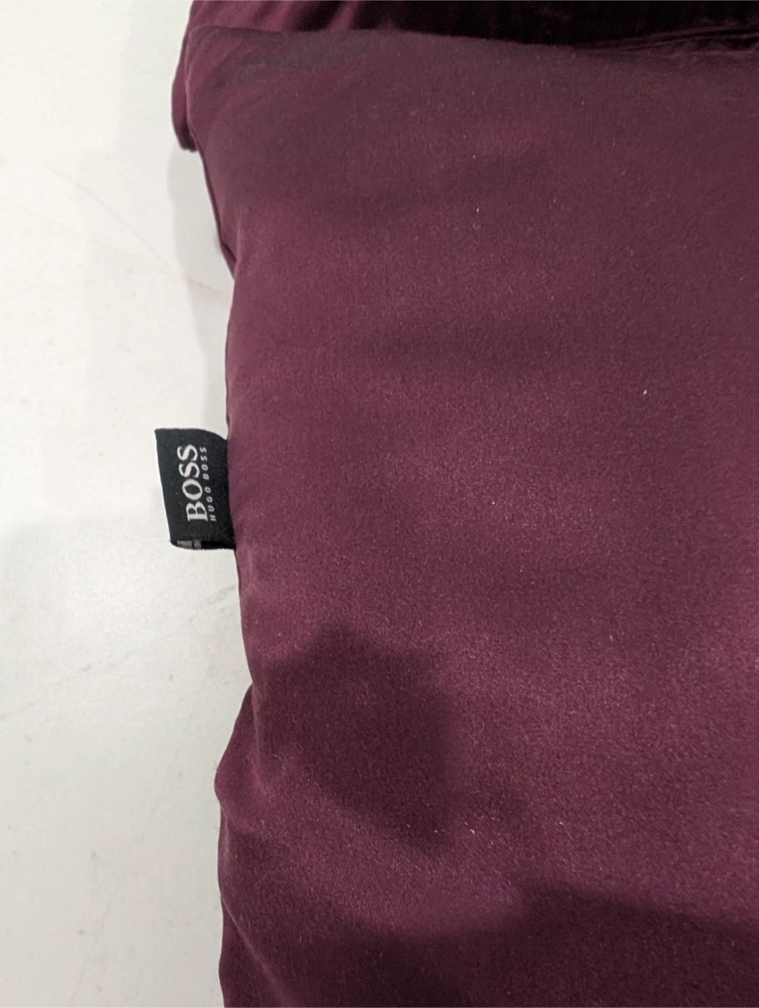 Selling a Hugo Boss pillow in a lovely burgundy colour! It's in great condition and measures 16x20 inches. The filling is 100% duck feathers, so it's super comfy! $70 for both