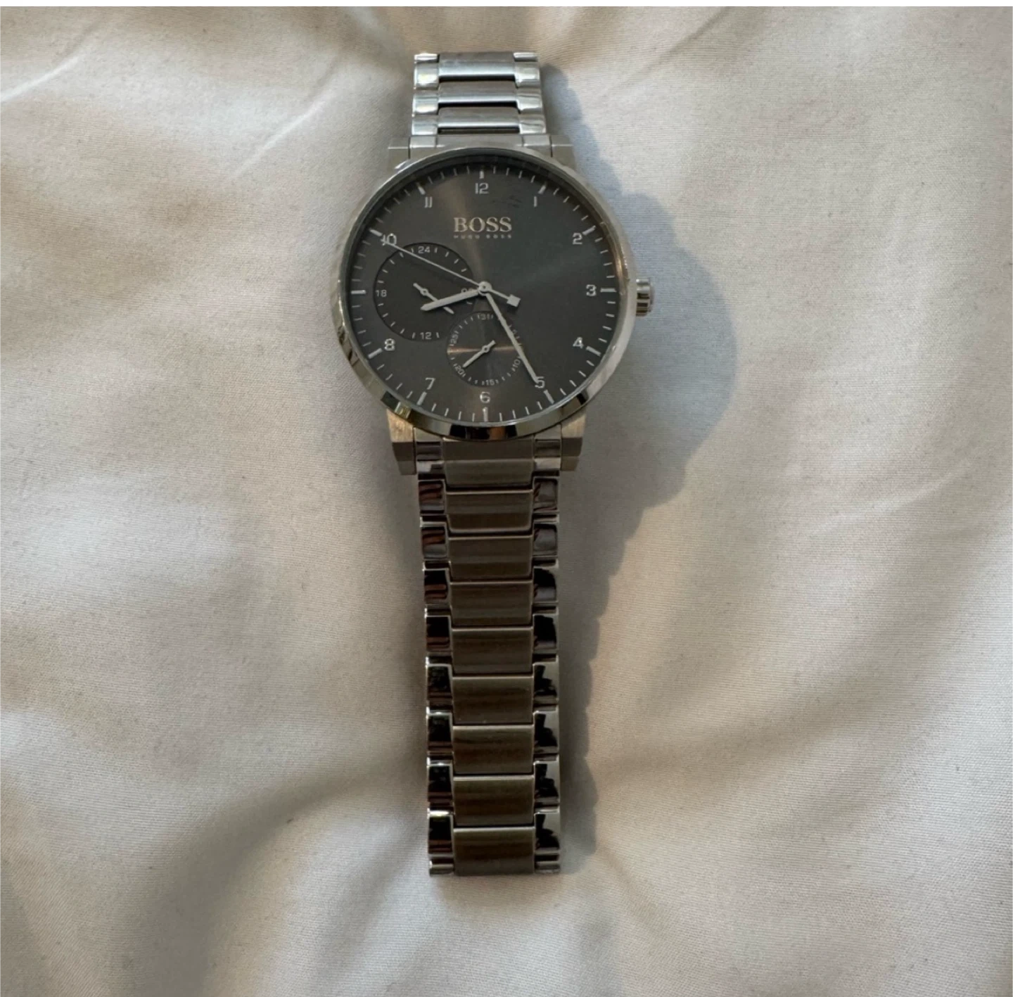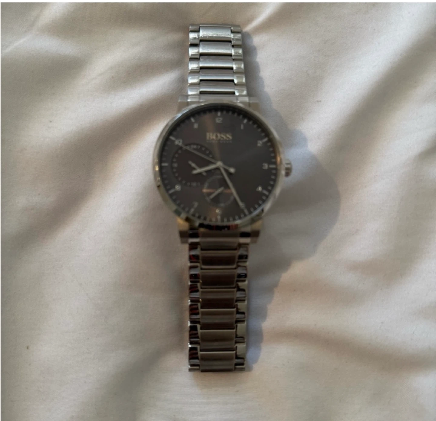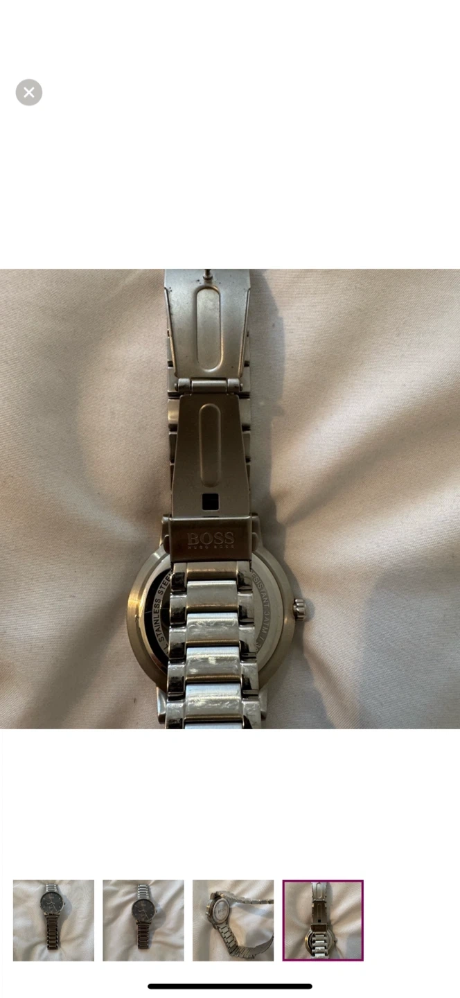 Selling a Hugo Boss men's watch with a stainless steel band. The watch is in good condition and has a sleek, minimalist design. It's water resistant up to 30 meters. The model number is HB.326.1.14.3072