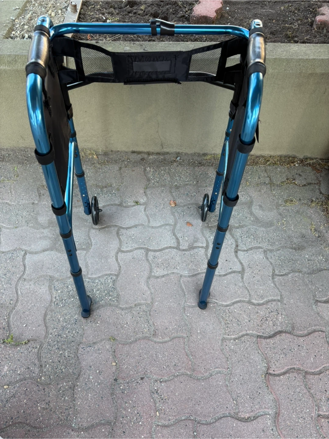 Selling a Hugo rollator walker in blue. Paid over $200 retail It's a great mobility aid that's been gently used. The rollator features a seat and a storage pouch, making it convenient for errands or walks. Ready for a new home!
