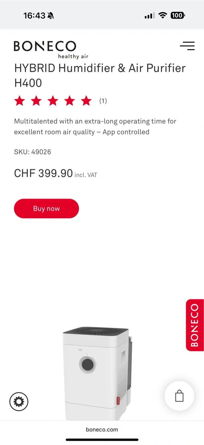 Selling a Boneco H400 hybrid humidifier and air purifier. It's multitalented with an extra-long operating time. App controlled for excellent room air quality.