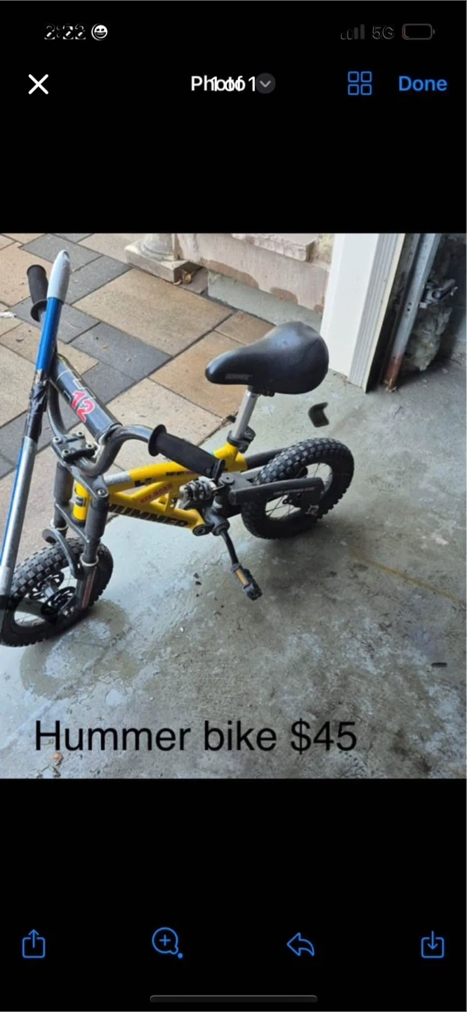Selling a Hummer kids bike. It's yellow and black, and ready for a new rider! Asking $45 If interested please contact (416) 804-5488