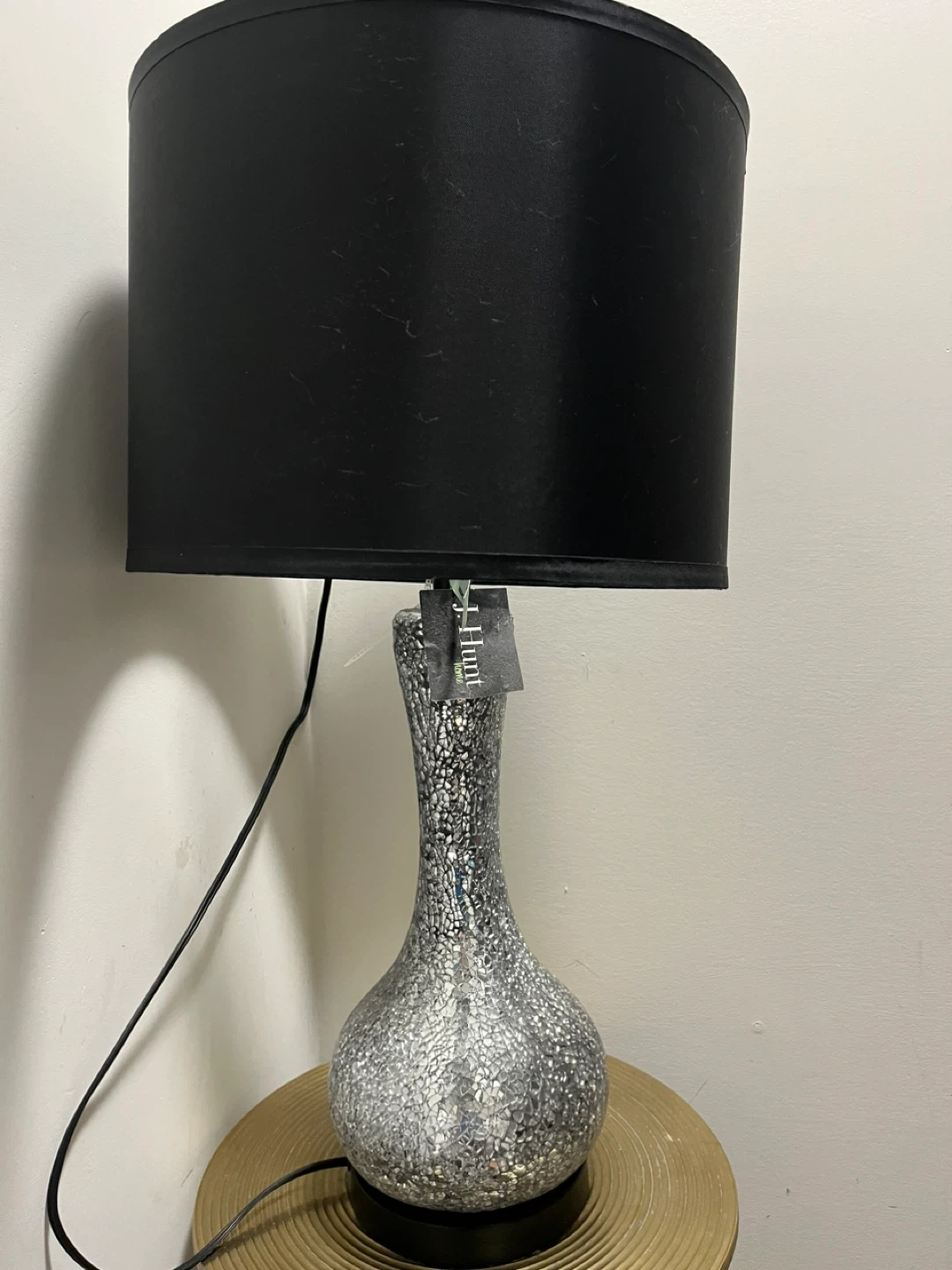 Selling a Hunt Club mosaic table lamp! It features a silver mosaic base and a black lampshade. It would look great in any room!