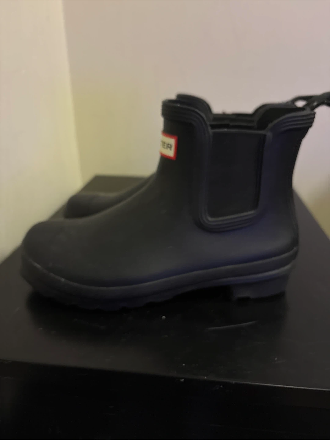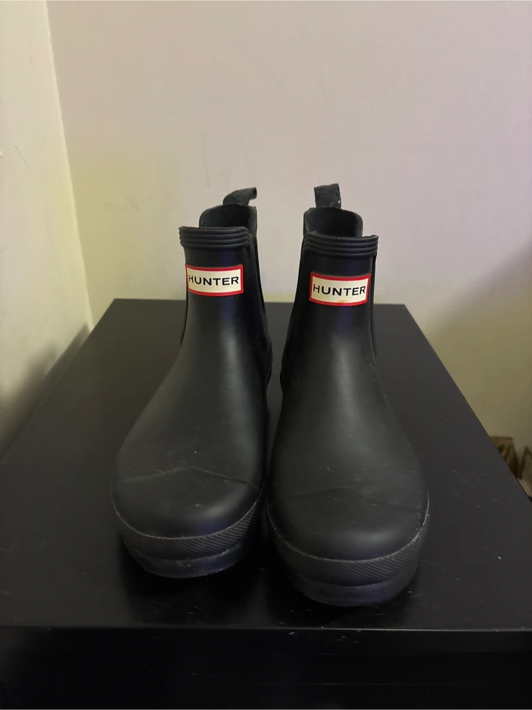 Selling a pair of black Hunter Chelsea rain boots. They're in good condition and perfect for rainy days! Worn maybe once or twice! Must go!