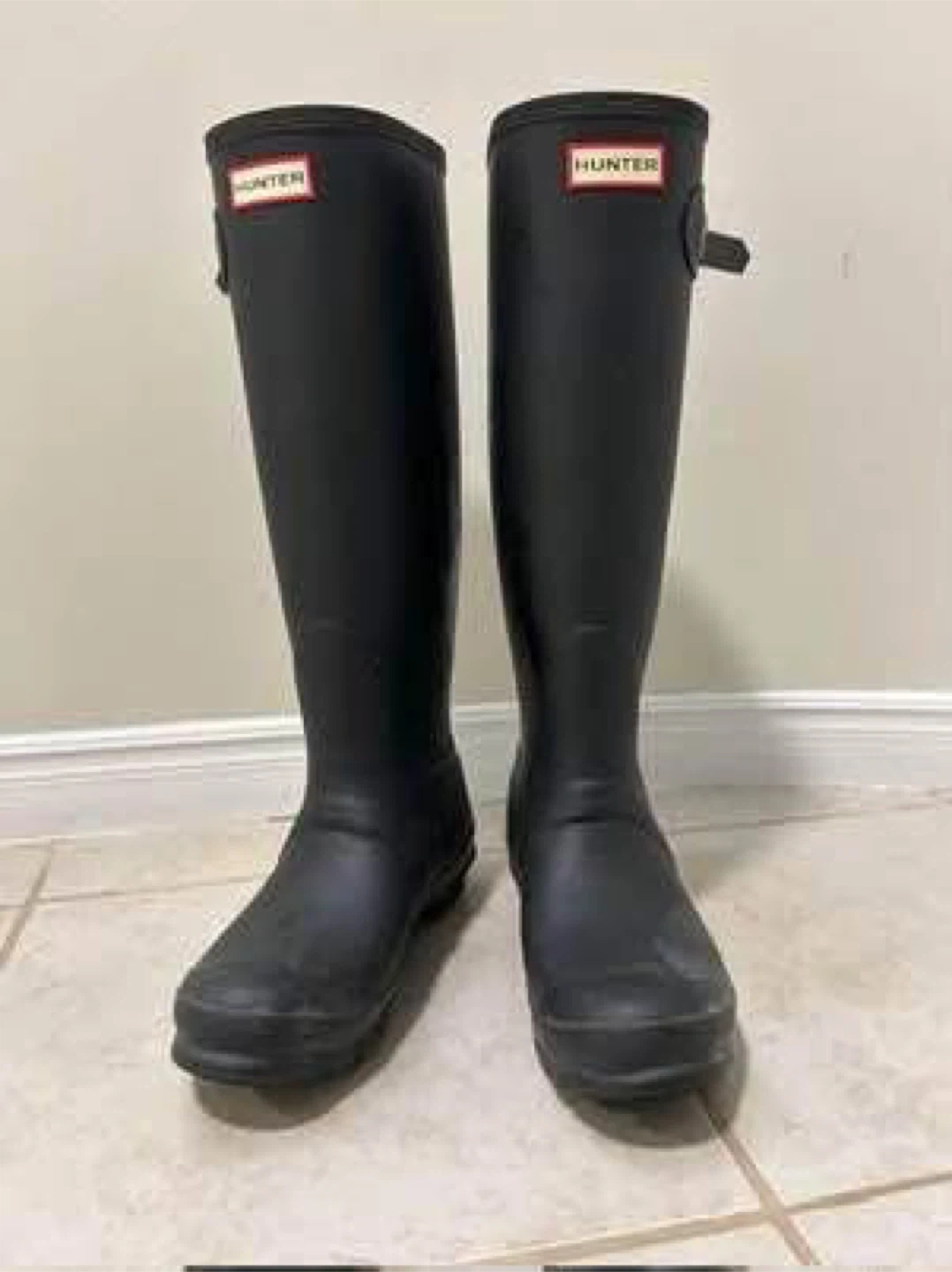 Selling a pair of Hunter rain boots in black! Perfect for keeping your feet dry Size 8