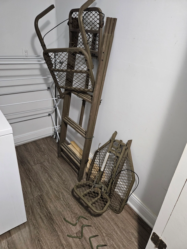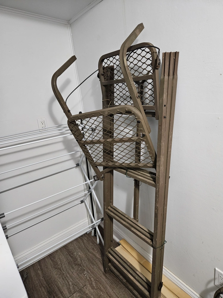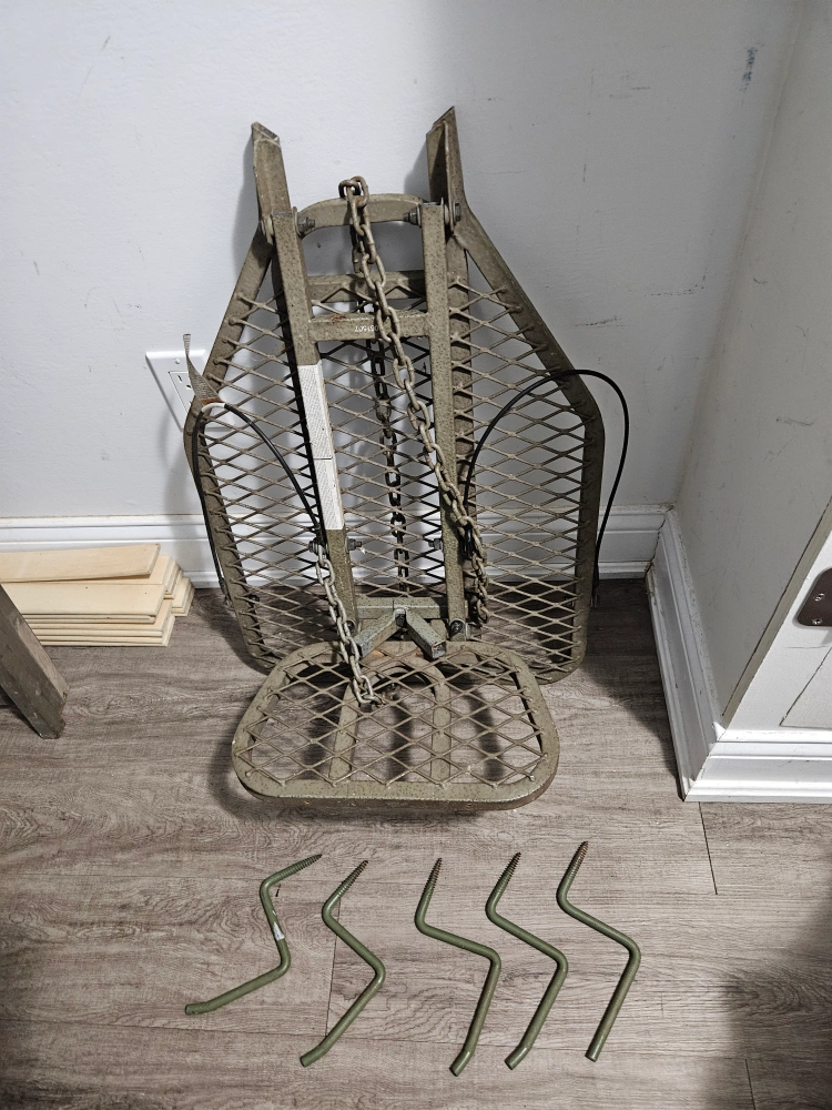 Selling a portable hunting tree stand. It appears to be in good condition and comes with all the necessary components for setup. Perfect for hunting season!