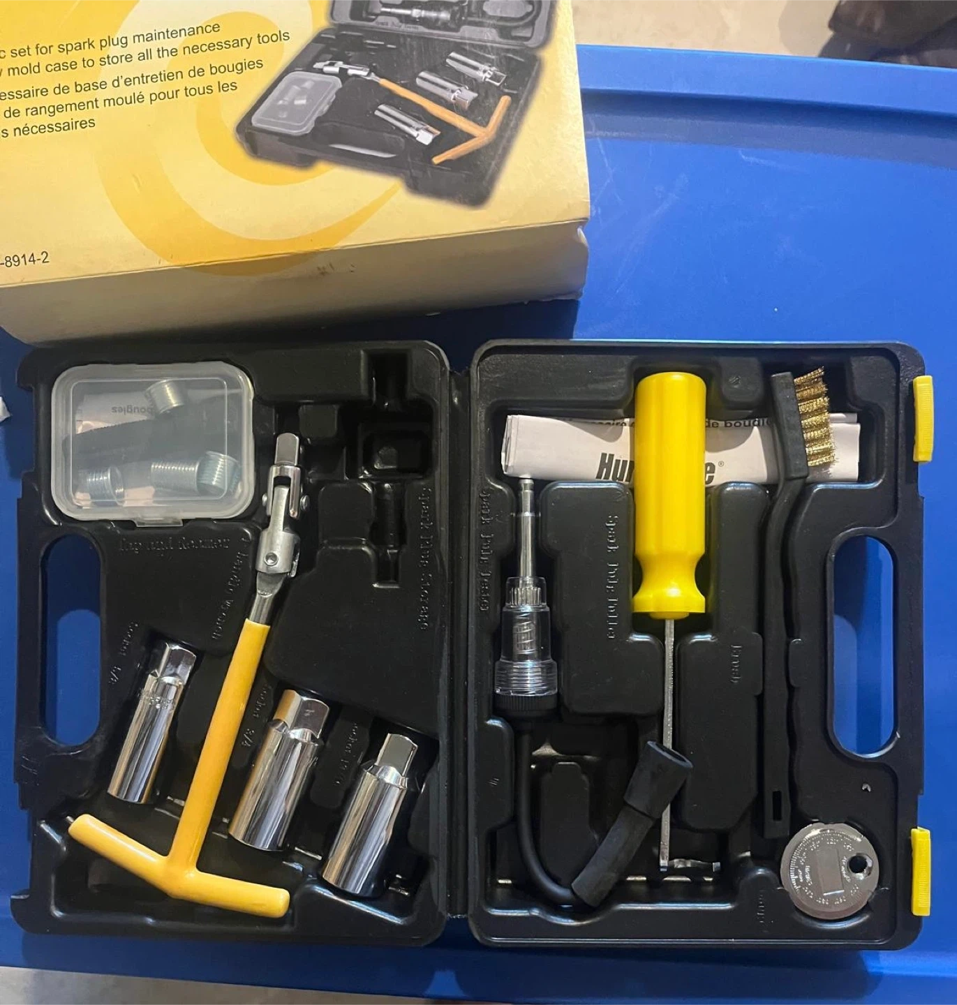 Selling a Hurricane spark plug maintenance set, complete with 14 pieces! It’s a basic set for spark plug maintenance and comes in a blow-molded case to store all the necessary tools. Perfect for keeping your car running smoothly!