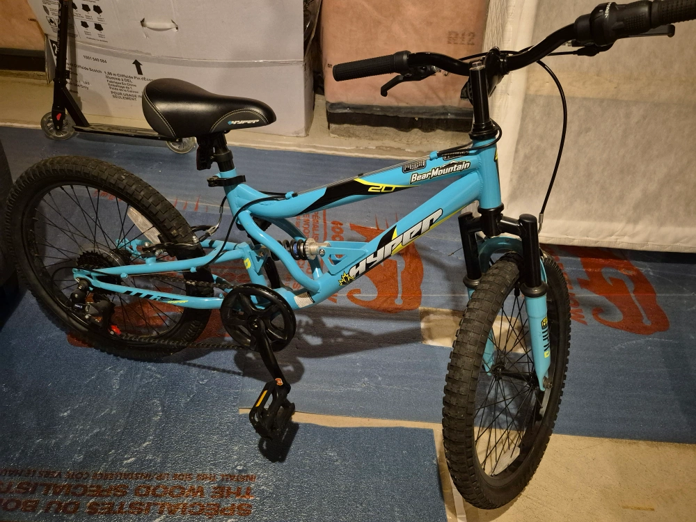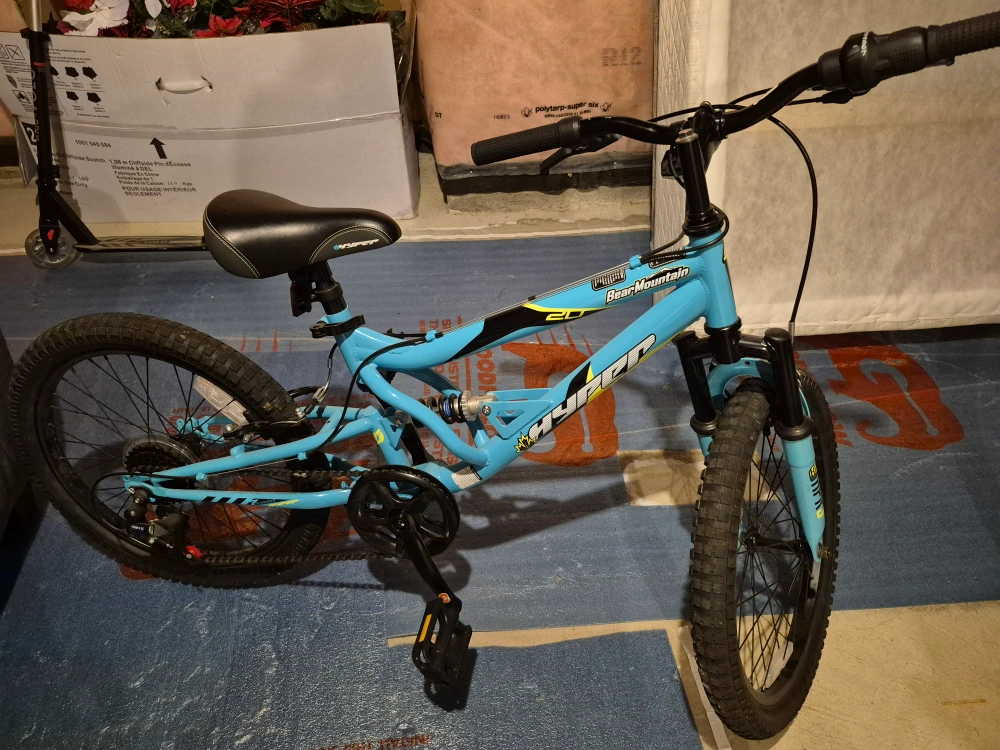Selling a Hyper Bear Mountain 20-inch kids' bike in blue! It's a great bike for young riders ready to explore. This bike is perfect for hitting the trails or just cruising around the neighbourhood