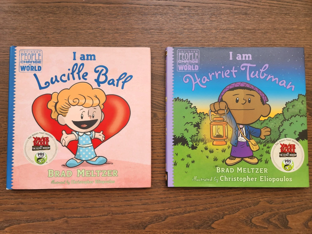Set of two hardcover books from Brad Meltzer's great "I Am" series of biographies for kids. Subjects are Harriet Tubman and Lucille Ball. Great for readers aged 5-9. Both books in excellent condition with exception of small wrinkle on bottom edge of dust jacket for the Lucy book (see photo).